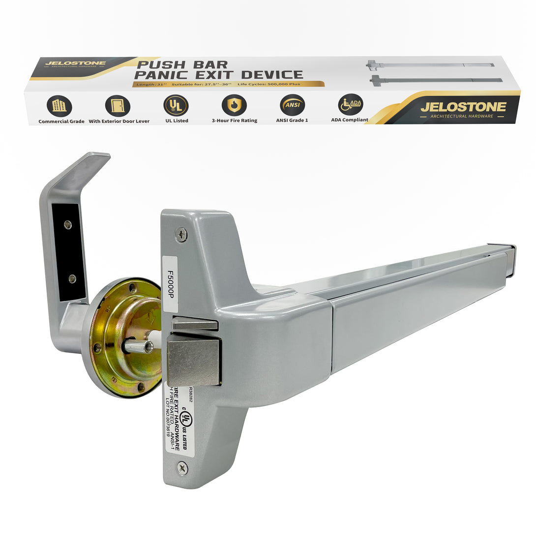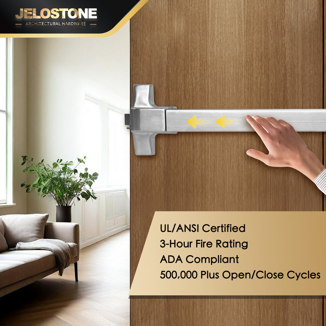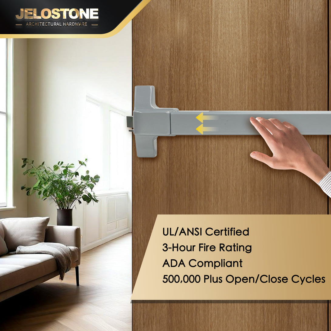 Made of Heavy Duty Stainless Steel/Steel, the JELOSTONE Commercial Door Push Bar Panic Exit Device is UL Listed, ANSI Grade 1 Certified, and ADA Approved for use in Medium to High Traffic Areas.
