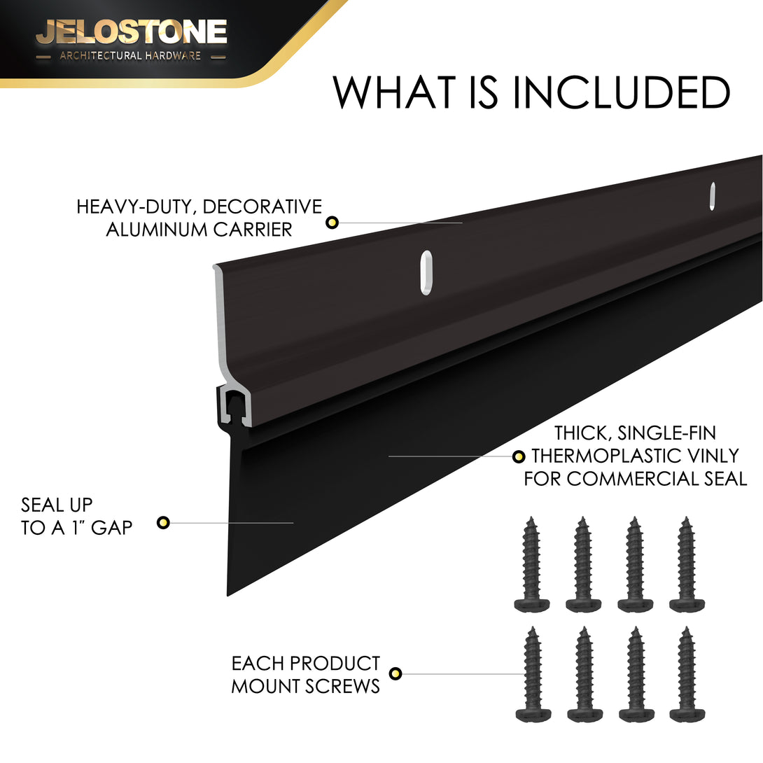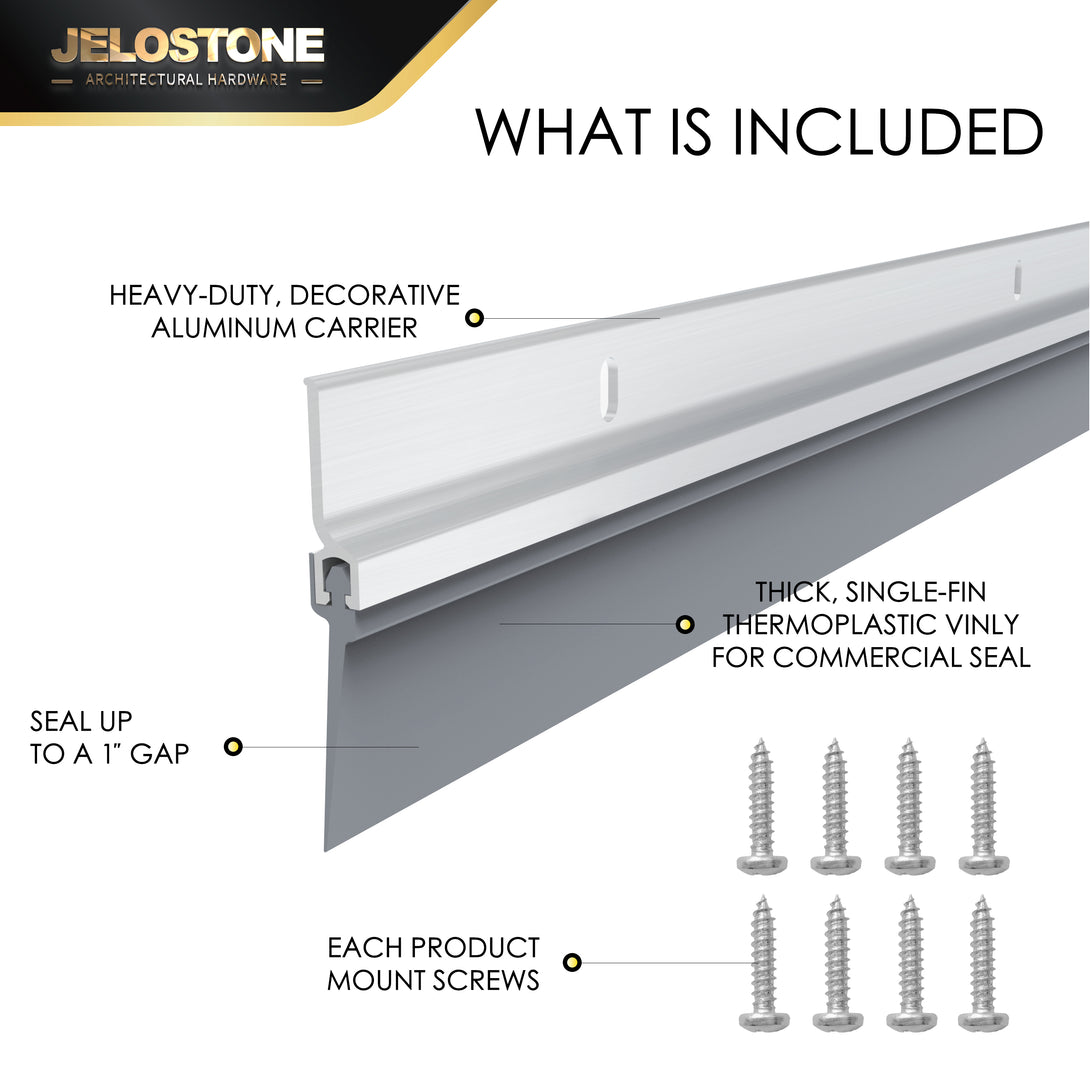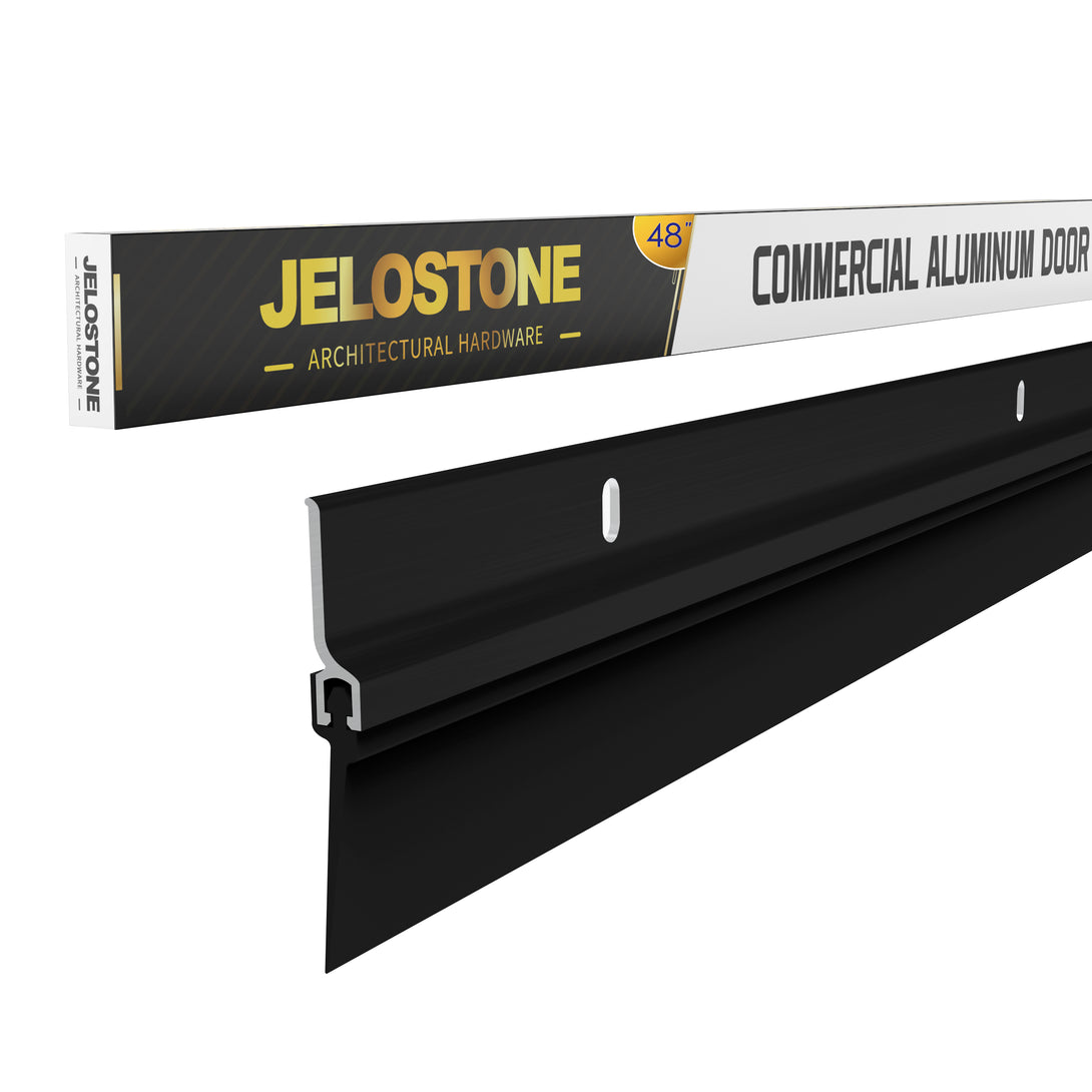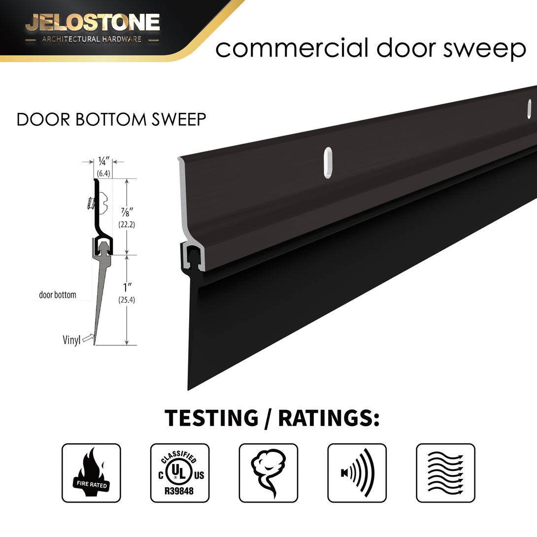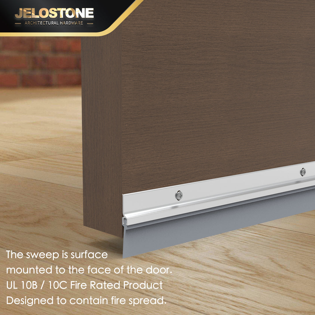 JELOSTONE Commercial Door Sweep JS-NV307 is crafted from a heavy-duty anodized aluminum carrier and thick single-fin thermoplastic vinyl rubber. It has a UL 10B/10C fire-resistance rating, being both durable and providing additional safety protection.