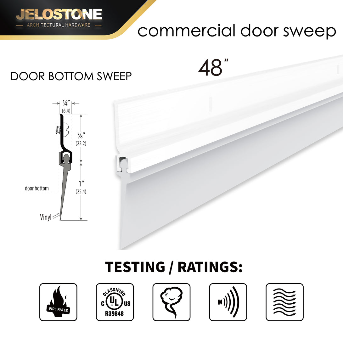 JELOSTONE Commercial Door Sweep JS-NV307 is UL-Certified, meeting high standards for performance, safety, and environmental friendliness. It suits both residential and commercial doors.