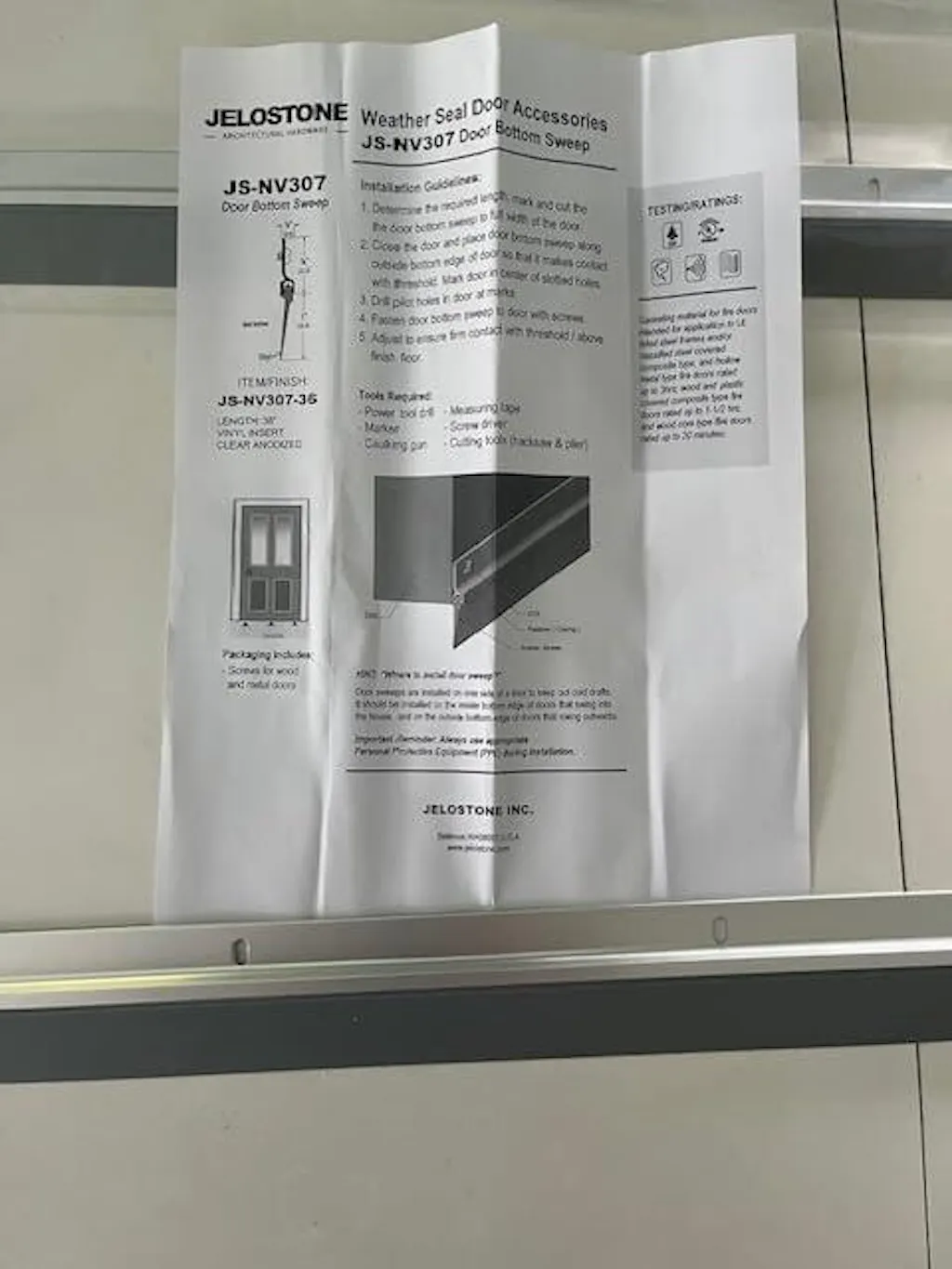 JELOSTONE Commercial Door Sweep JS-NV307 is UL-Certified, meeting high standards for performance, safety, and environmental friendliness. It suits both residential and commercial doors.