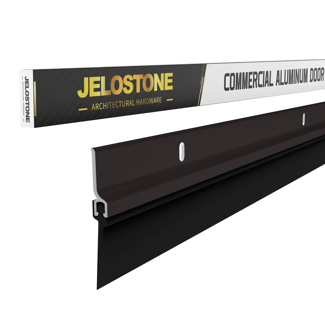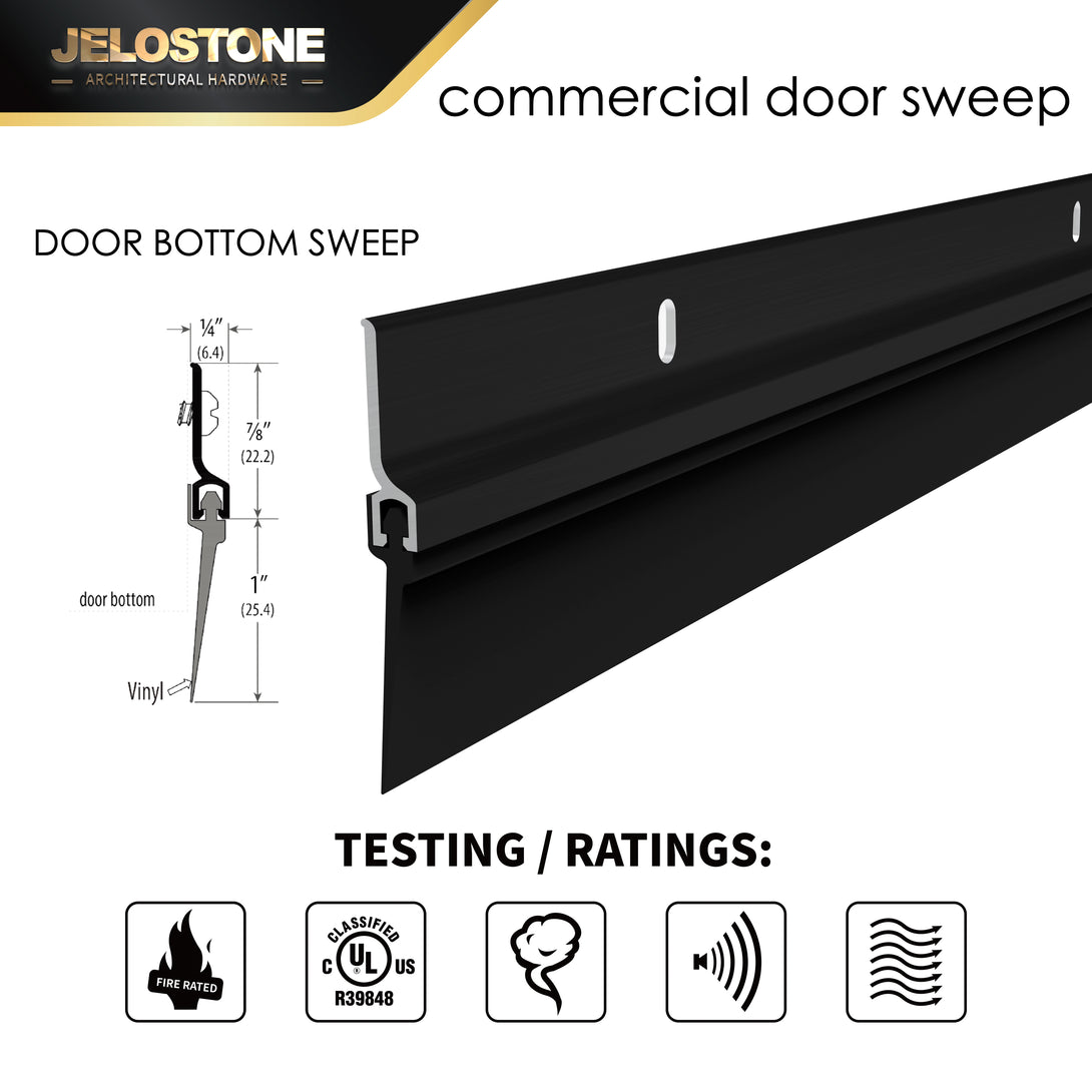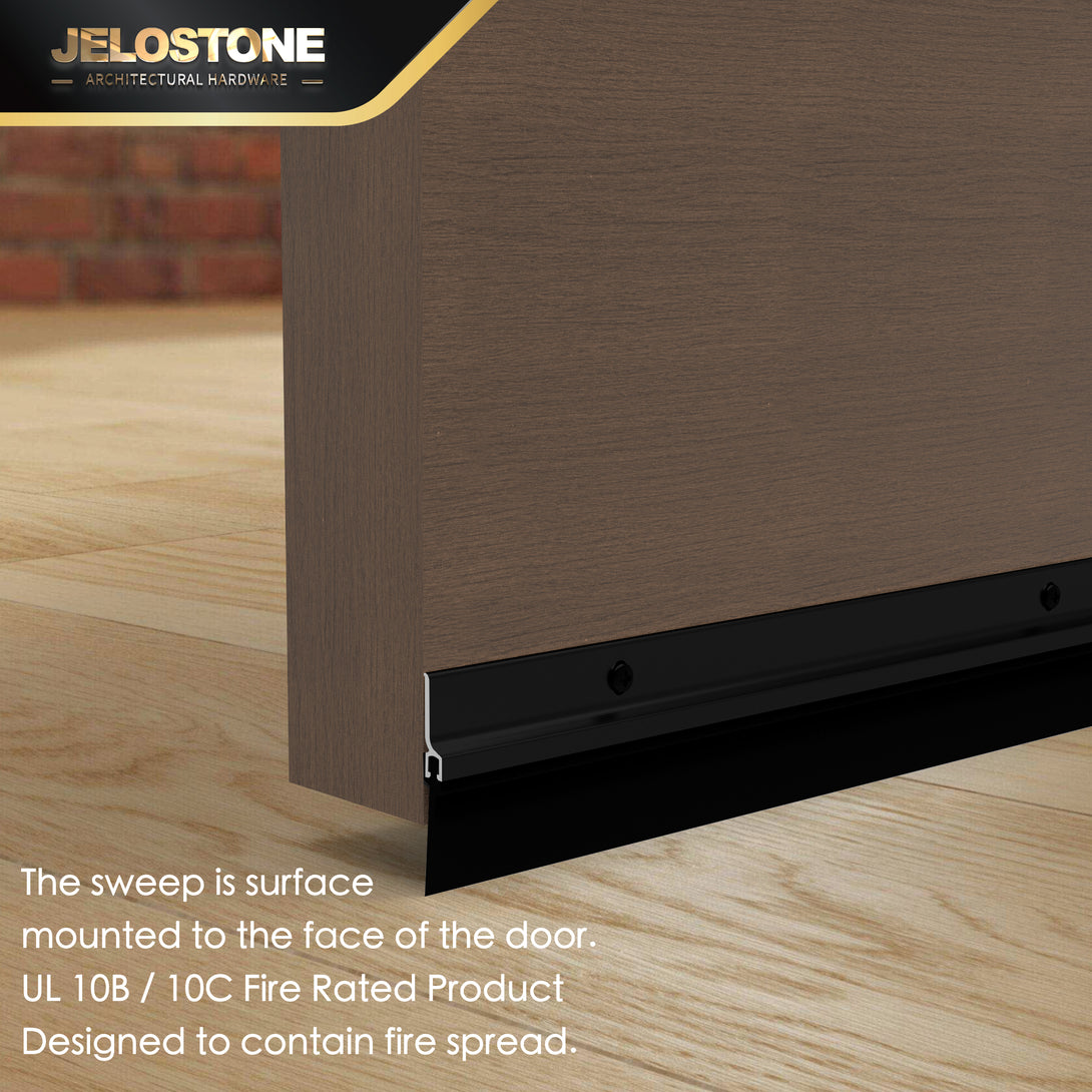 JELOSTONE Commercial Door Sweep JS-NV307 is crafted from a heavy-duty anodized aluminum carrier and thick single-fin thermoplastic vinyl rubber. It has a UL 10B/10C fire-resistance rating, being both durable and providing additional safety protection.