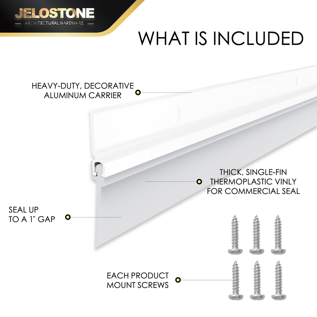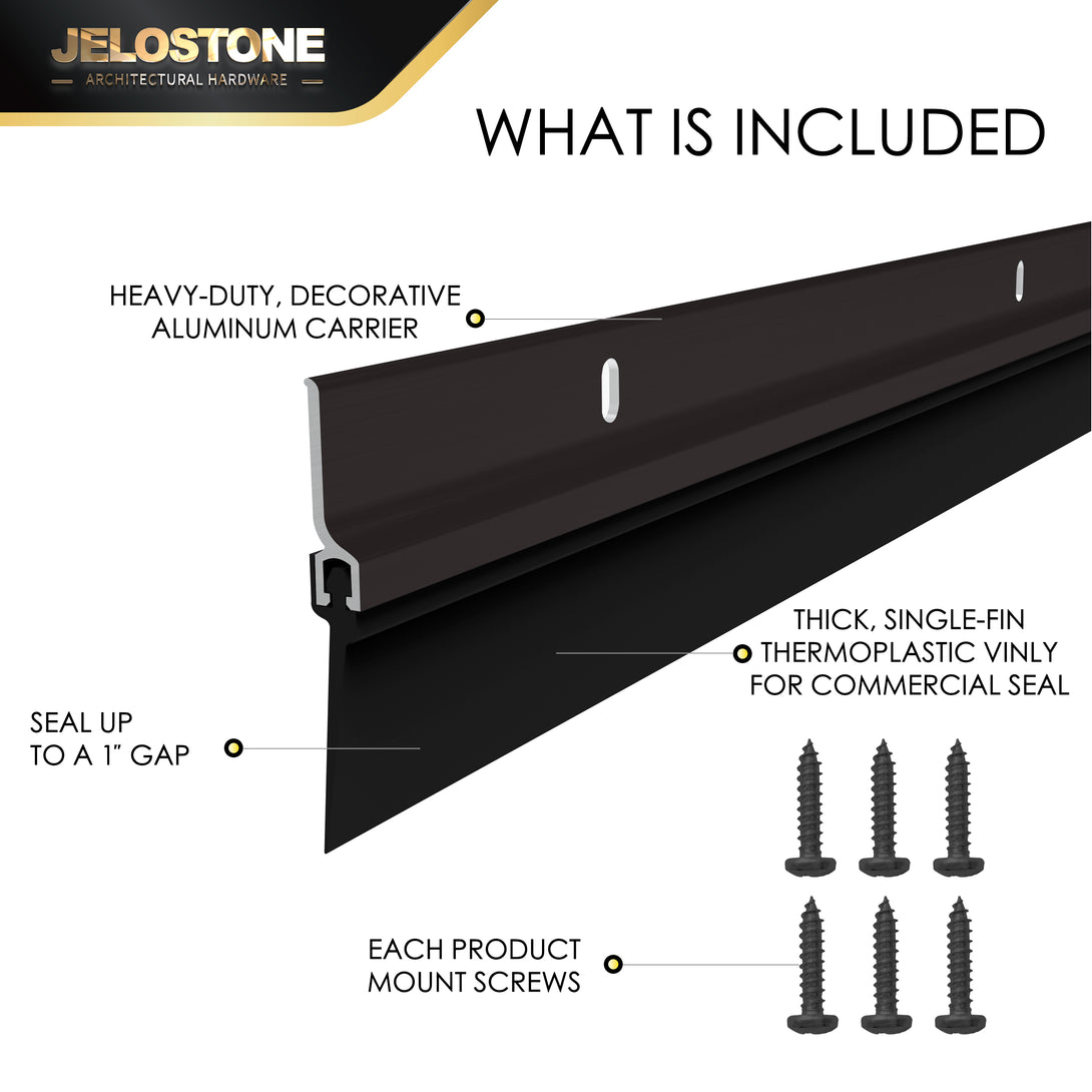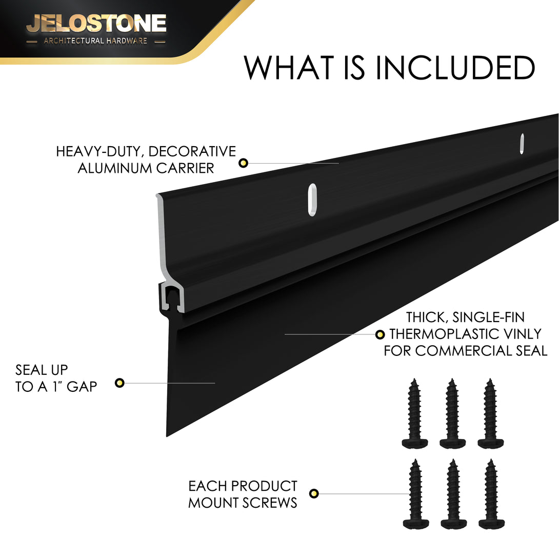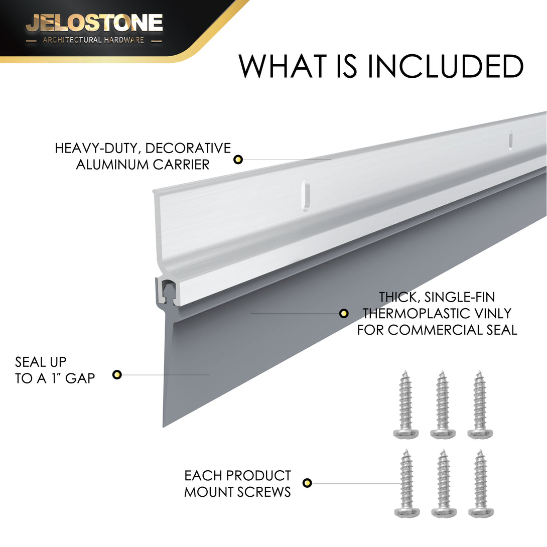JELOSTONE Commercial Door Sweep JS-NV307 is crafted from a heavy-duty anodized aluminum carrier and thick single-fin thermoplastic vinyl rubber. It has a UL 10B/10C fire-resistance rating, being both durable and providing additional safety protection.