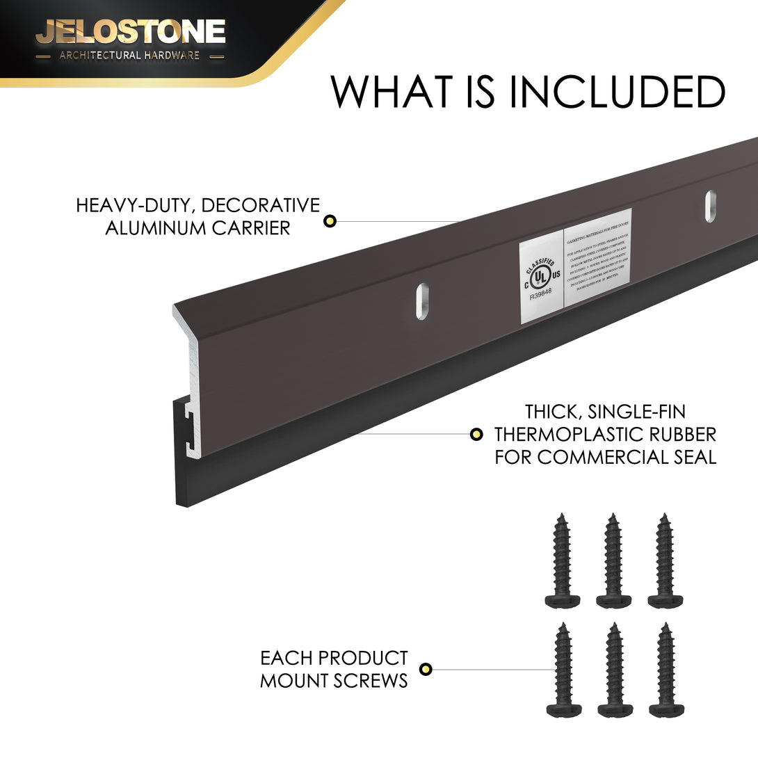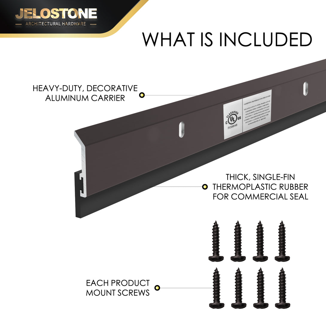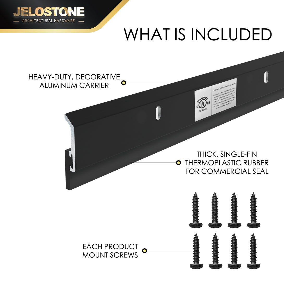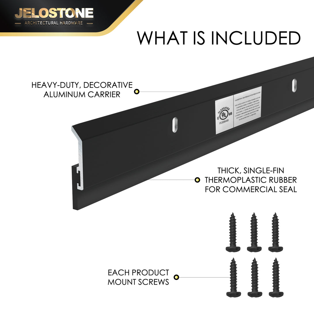 JELOSTONE Commercial Door Sweep is crafted from a heavy-duty anodized aluminum carrier and thick single-fin thermoplastic rubber. It has a UL 10B/10C fire-resistance rating, being both durable and providing additional safety protection.