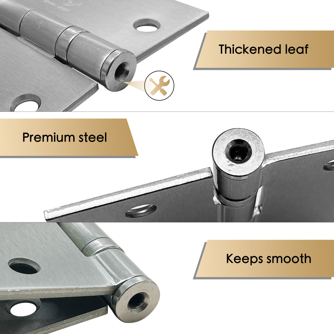 Our Commercial Grade Ball Bearing Door Hinge JS-5BB2 are made of high-quality stainless steel and have a durable finish that will last for a long time. They are machined using high-quality materials and designed to provide strength and performance.