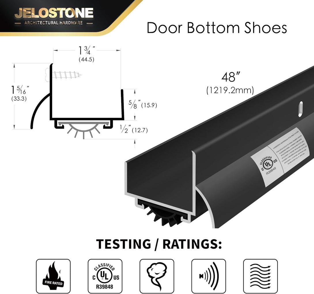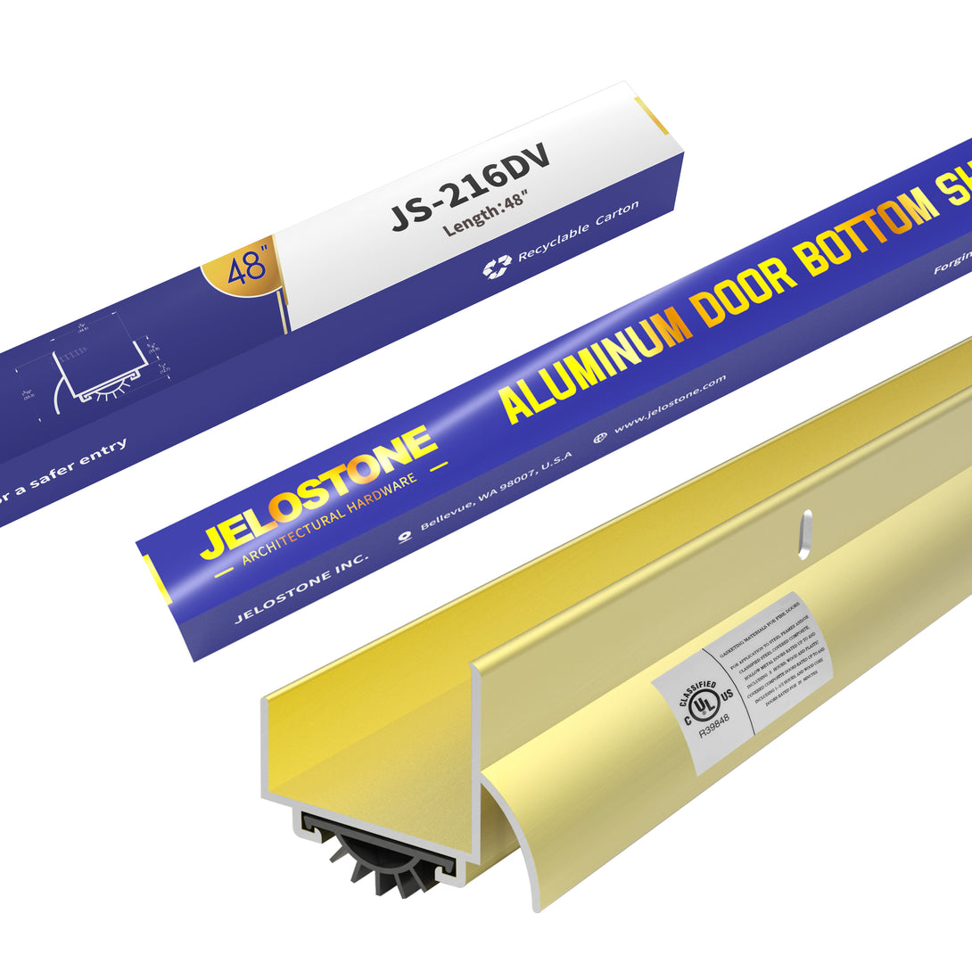 JELOSTONE Commercial Door Bottom Shoes JS-216DV is UL-Certified, meeting high standards for performance, safety, and environmental friendliness. It suits both residential and commercial doors.