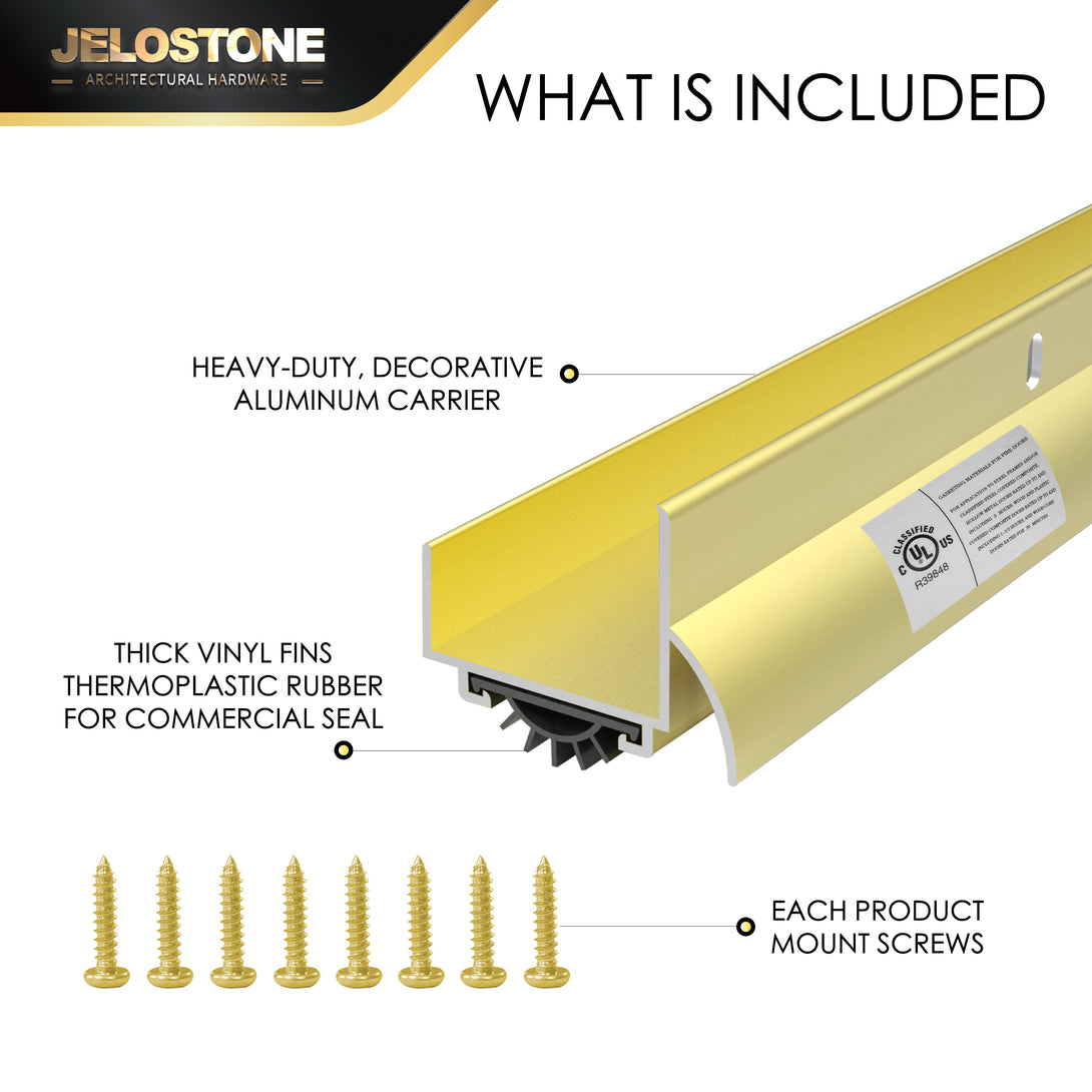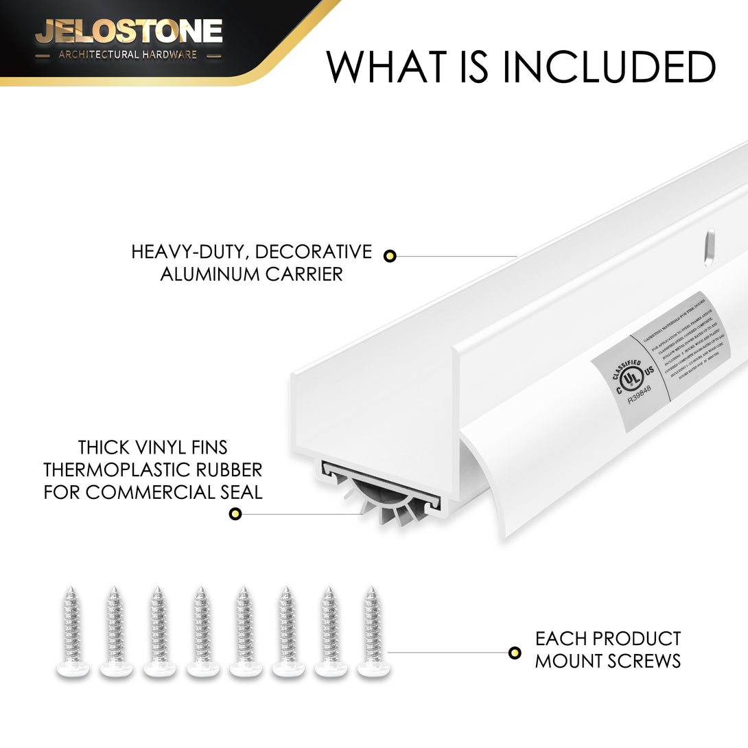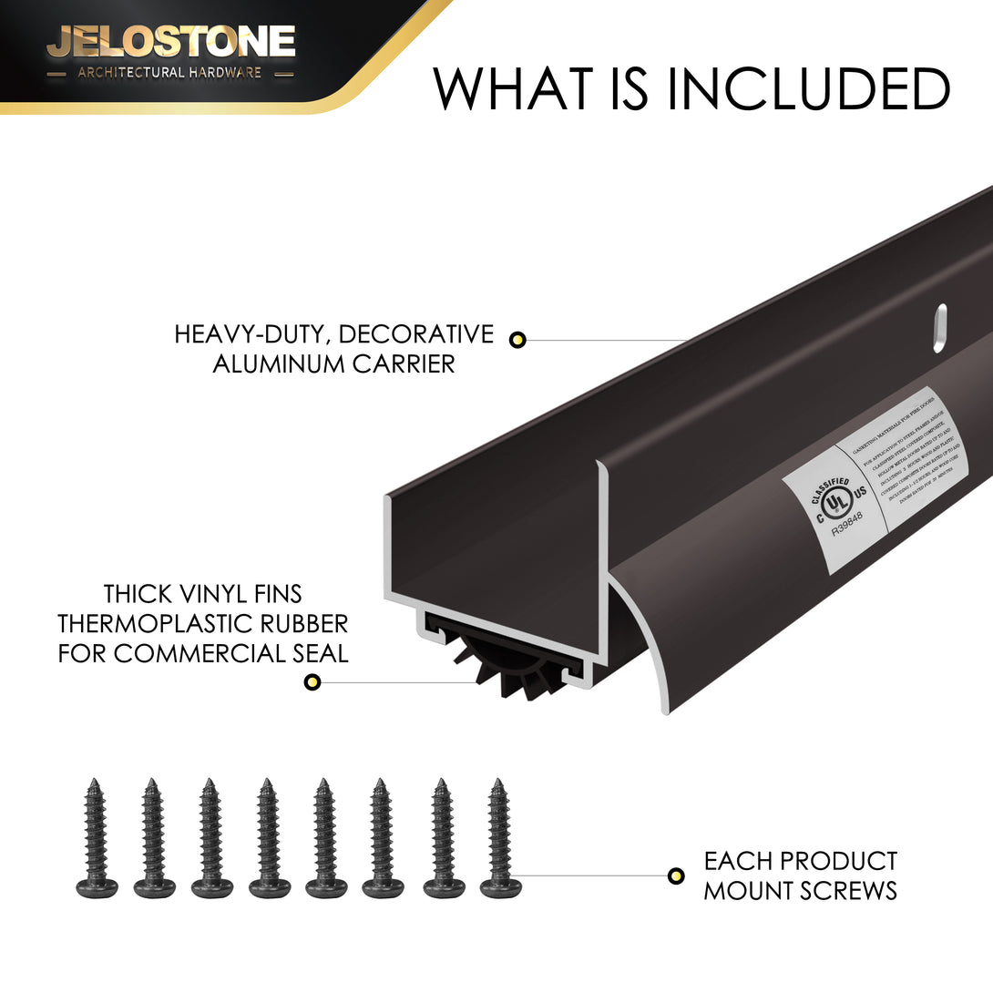 JELOSTONE Commercial Door Bottom Shoes JS-216DV is crafted from a heavy-duty aluminum carrier and vinyl rubber, offering long-lasting performance and acting as a weather-stripping door seal bottom. It has a UL 10B/10C fire-resistance rating, being both durable and providing additional safety protection.