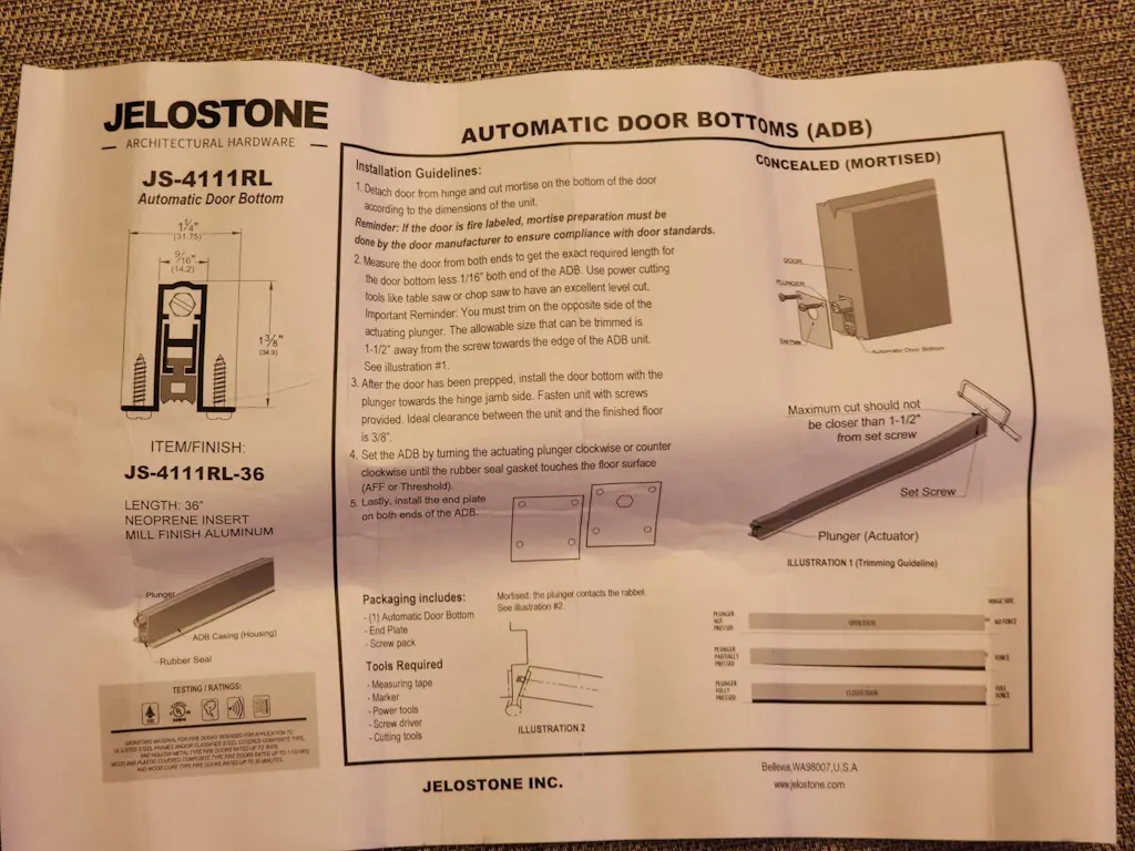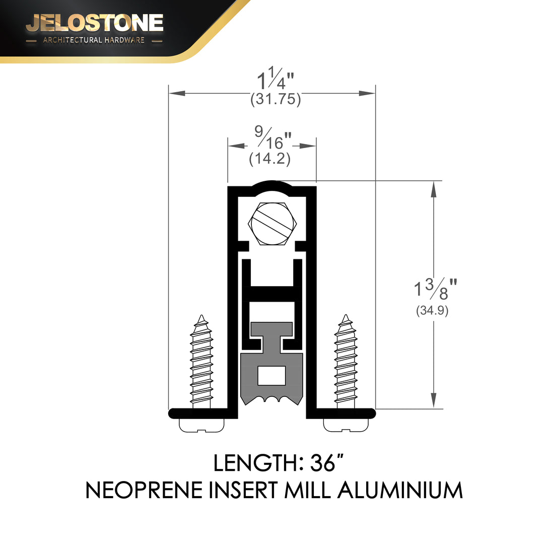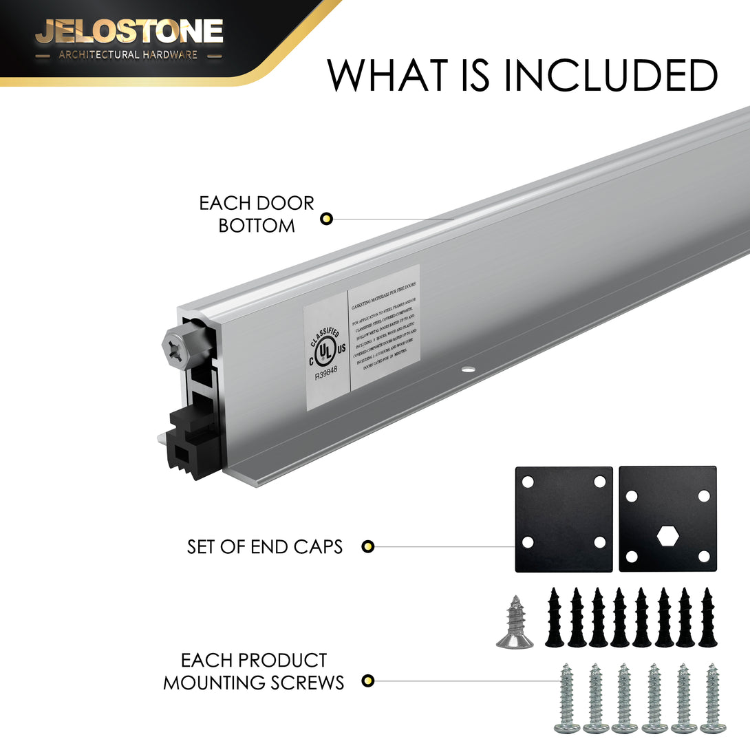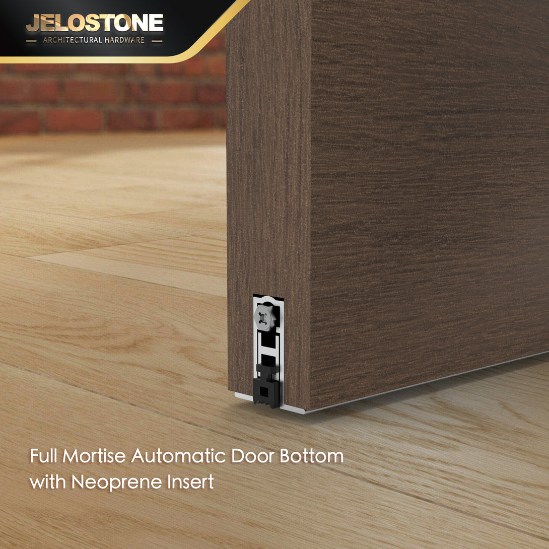 All JELOSTONE Automatic Door Bottoms are provided in net length, which means they are supplied in their full length without any trimming. Stock length automatic door bottoms can be trimmed to fit specific door sizes; however, the maximum cut should not be closer than 1-1/2" from the set screw.
