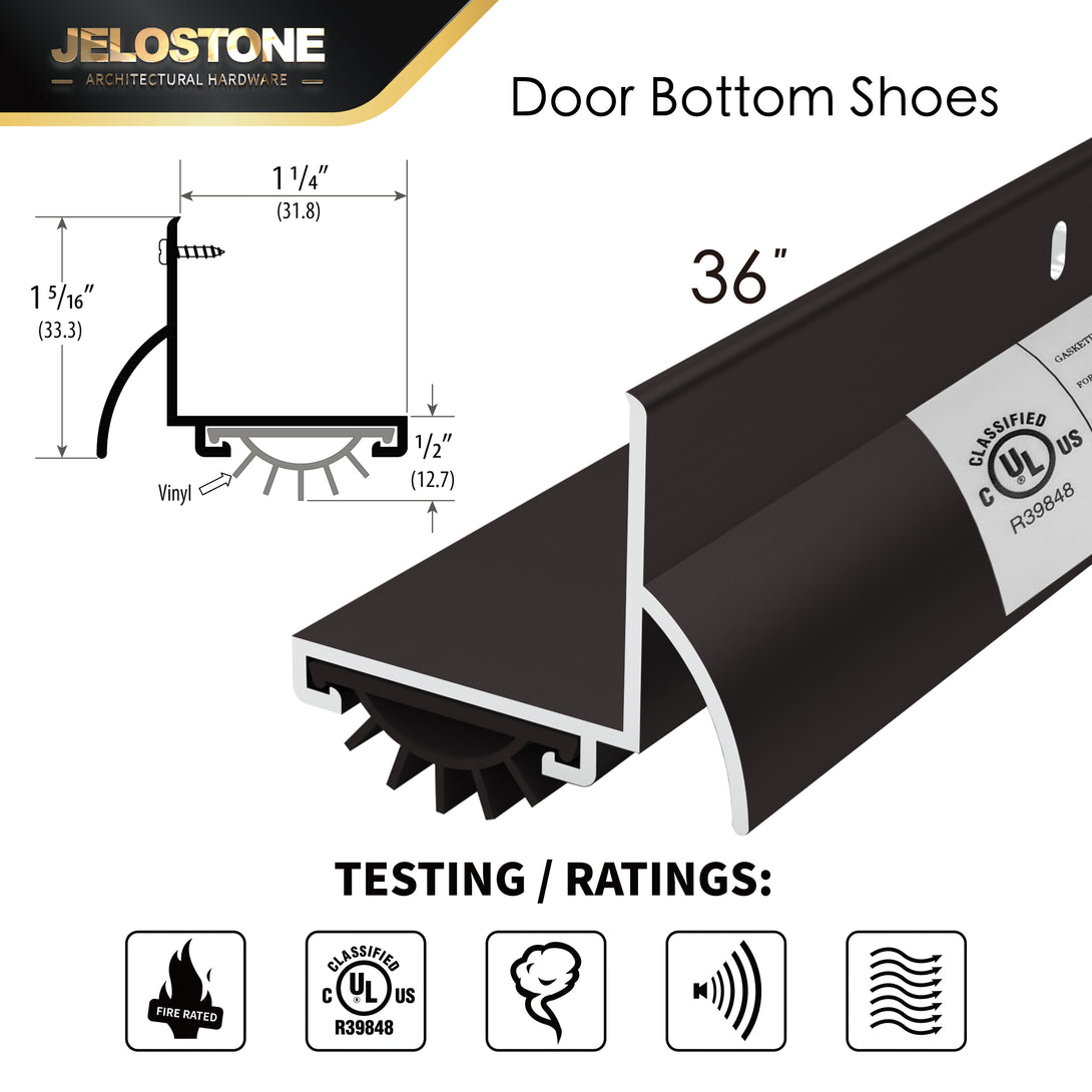 Ideal for outswing exterior doors in offices, schools, hotels, and homes. Available in 36” & 48” lengths and premium finishes: Mill Finish, White Powder Coat, Dark Bronze Anodized, and Matte Black Anodized.