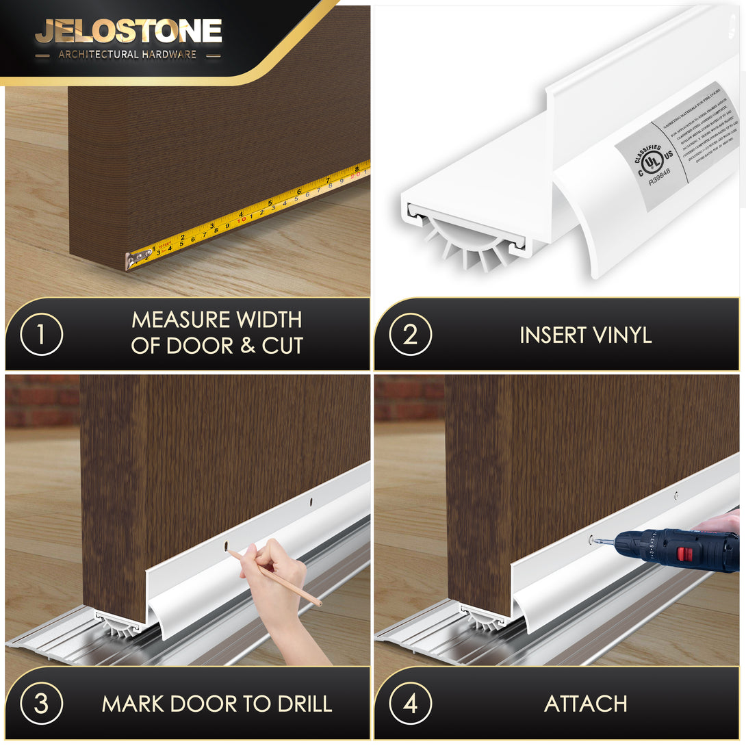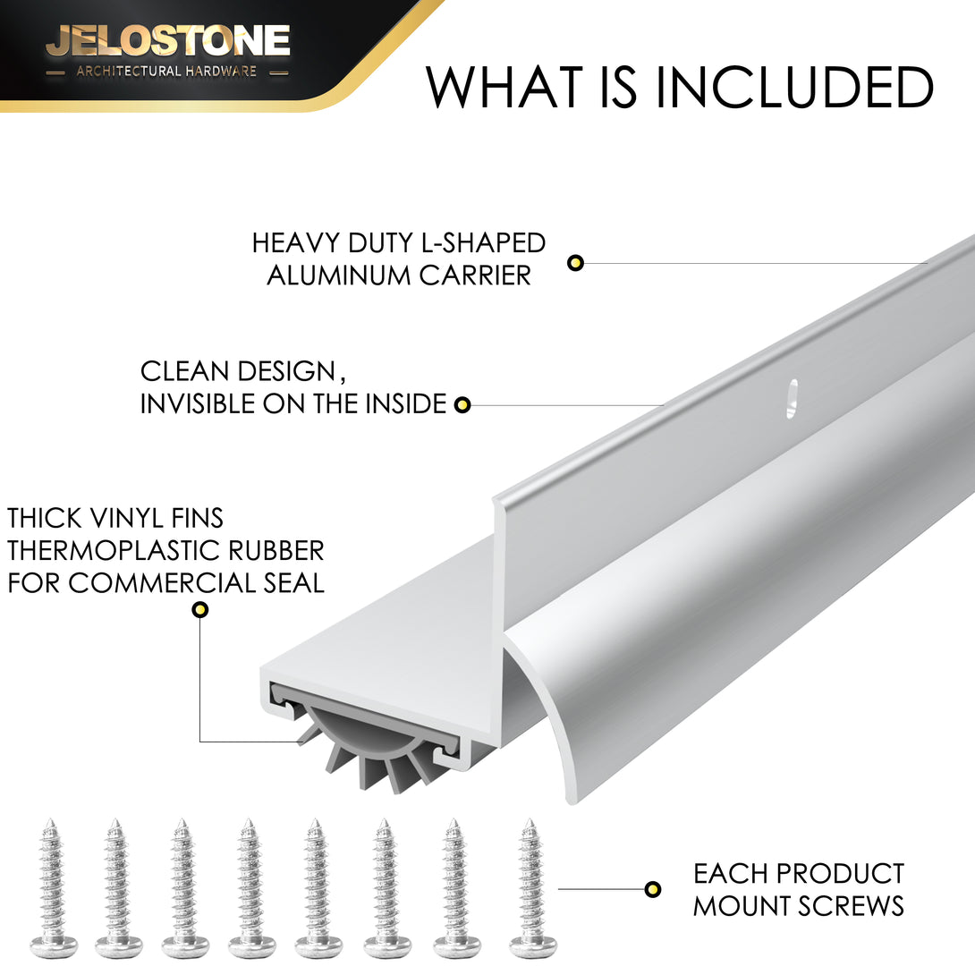 Includes screws for both wood and metal doors. Slotted holes allow precise adjustments for a tight, even fit against thresholds, ensuring hassle-free installation.