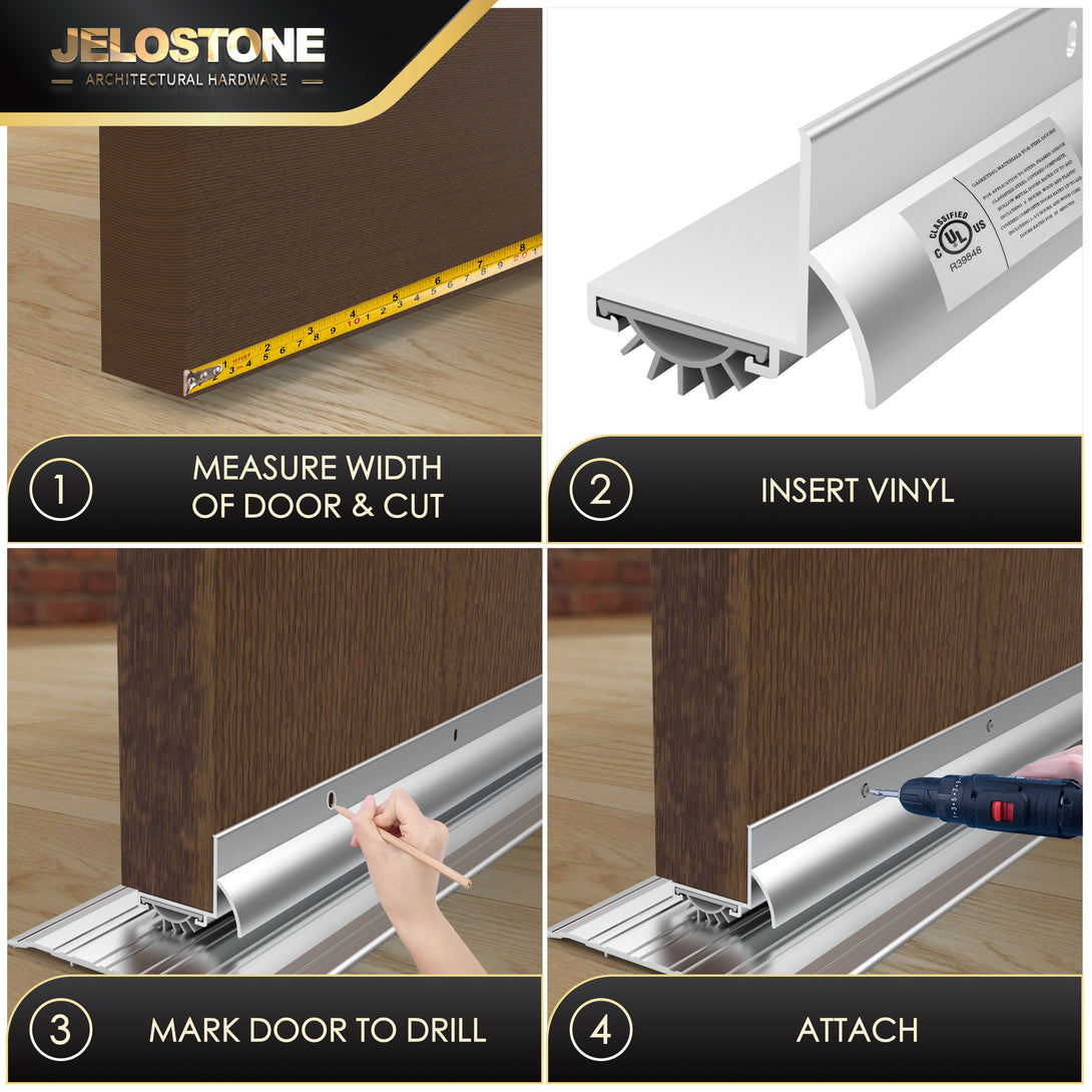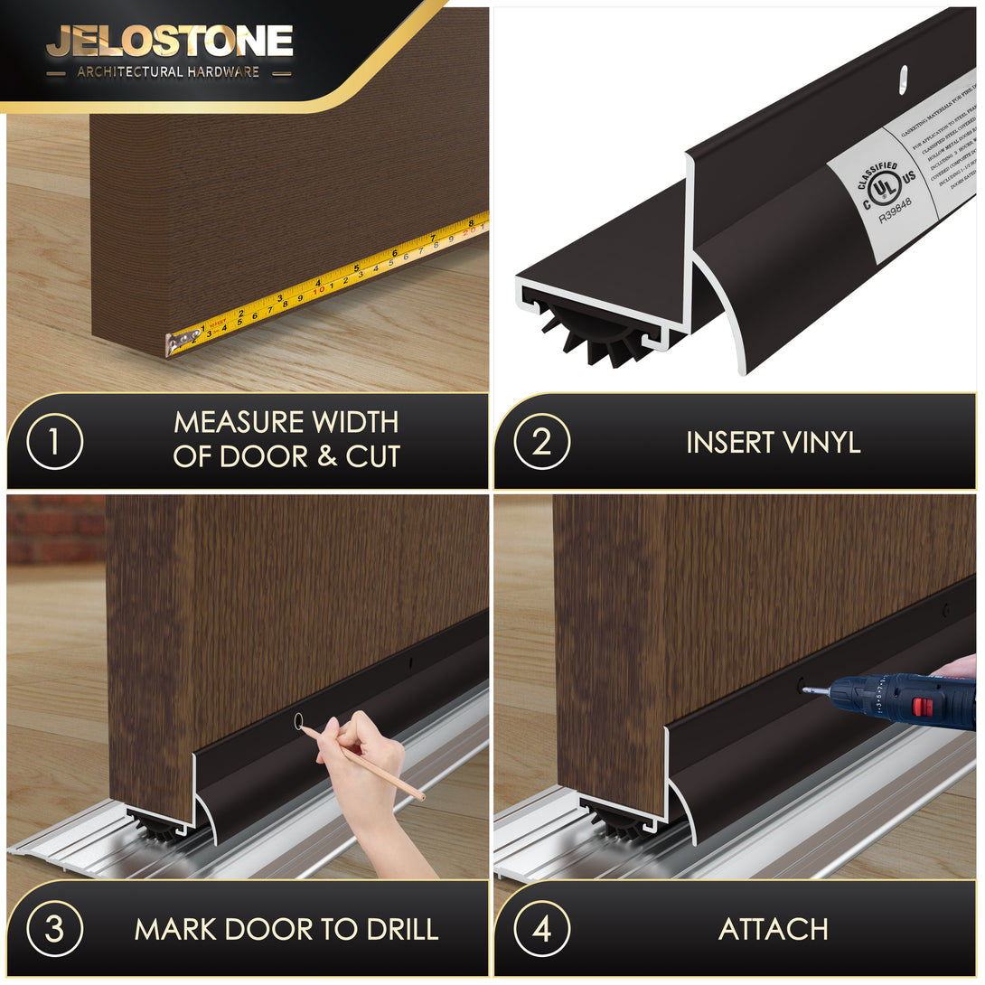 Certified for up to 3 hours of fire resistance, the JS-210DV seals against smoke, air, sound, and weather, making it suitable for commercial fire-rated door applications.