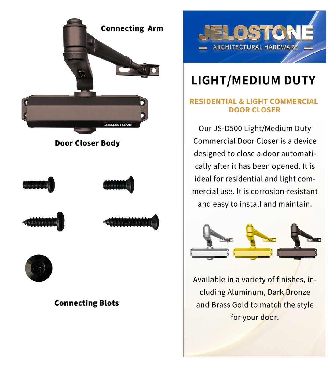 | Included Components | Brackets and Soffit Plate to allow Reqular/Top Jamb/Parallel Arm Installations |