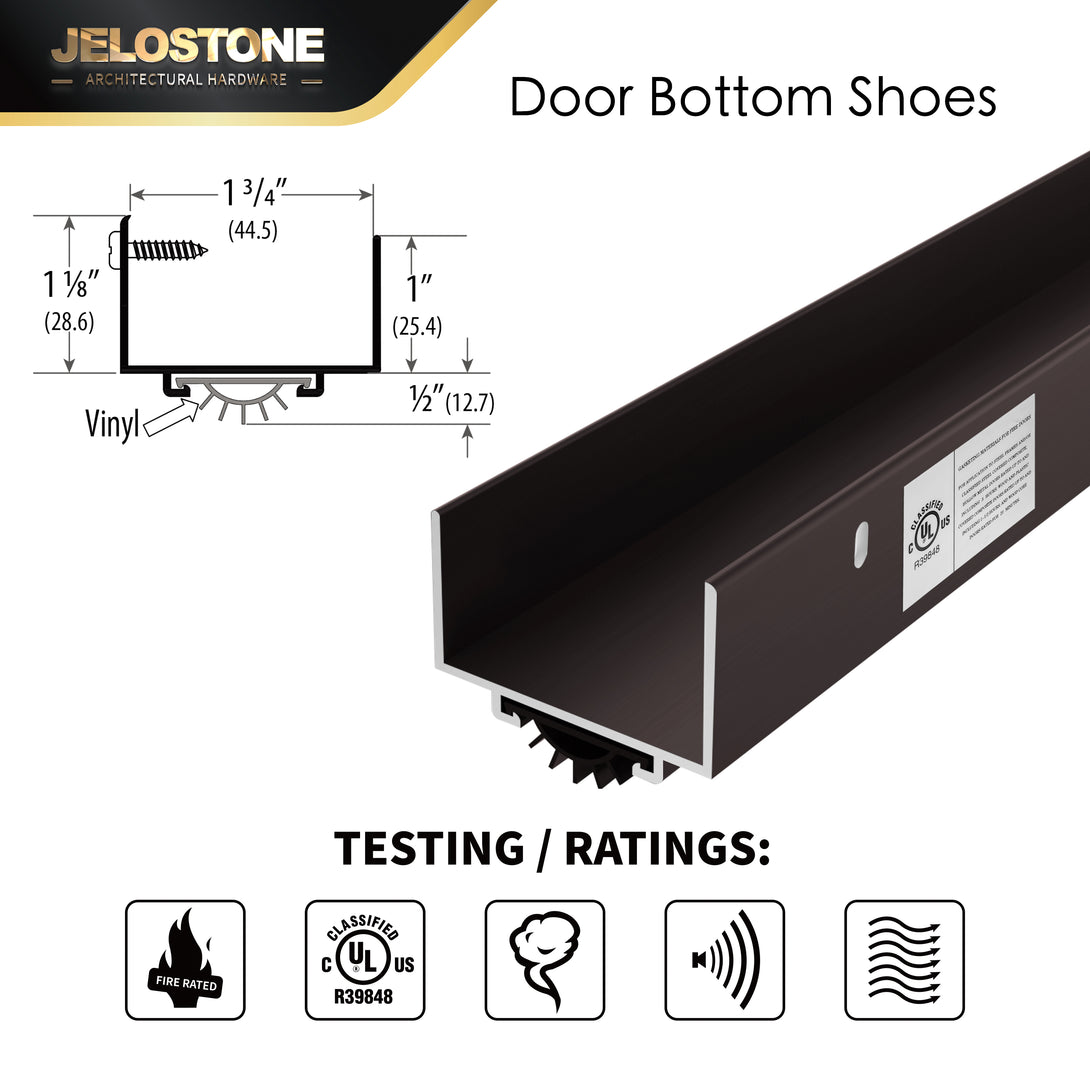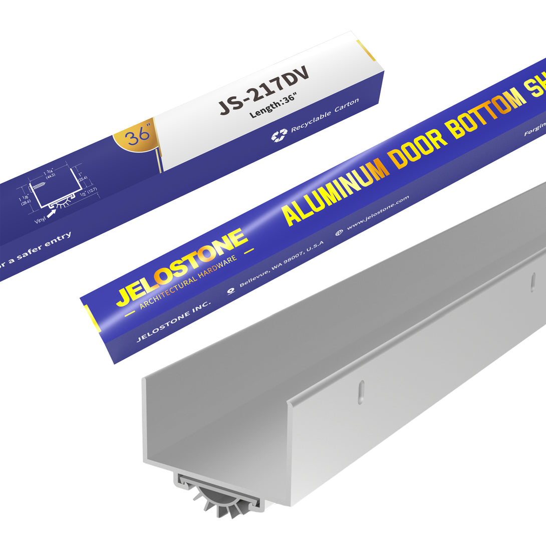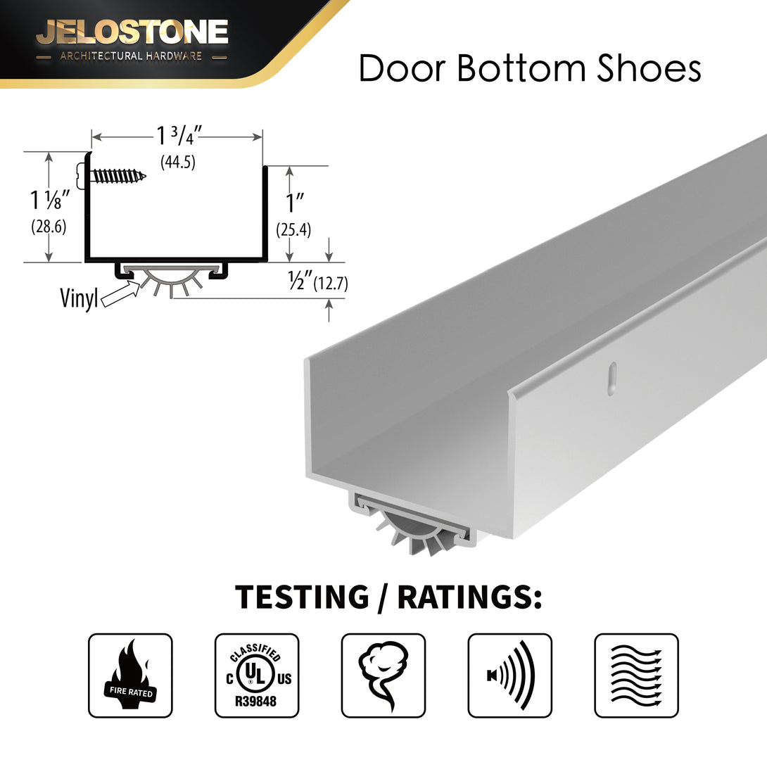 JELOSTONE 36 Inch U-Shaped Aluminum Door Bottom Shoes - Fire Rated Weather Stripping Seal for Exterior Doors, Vinyl Insert, JS-217DV-36