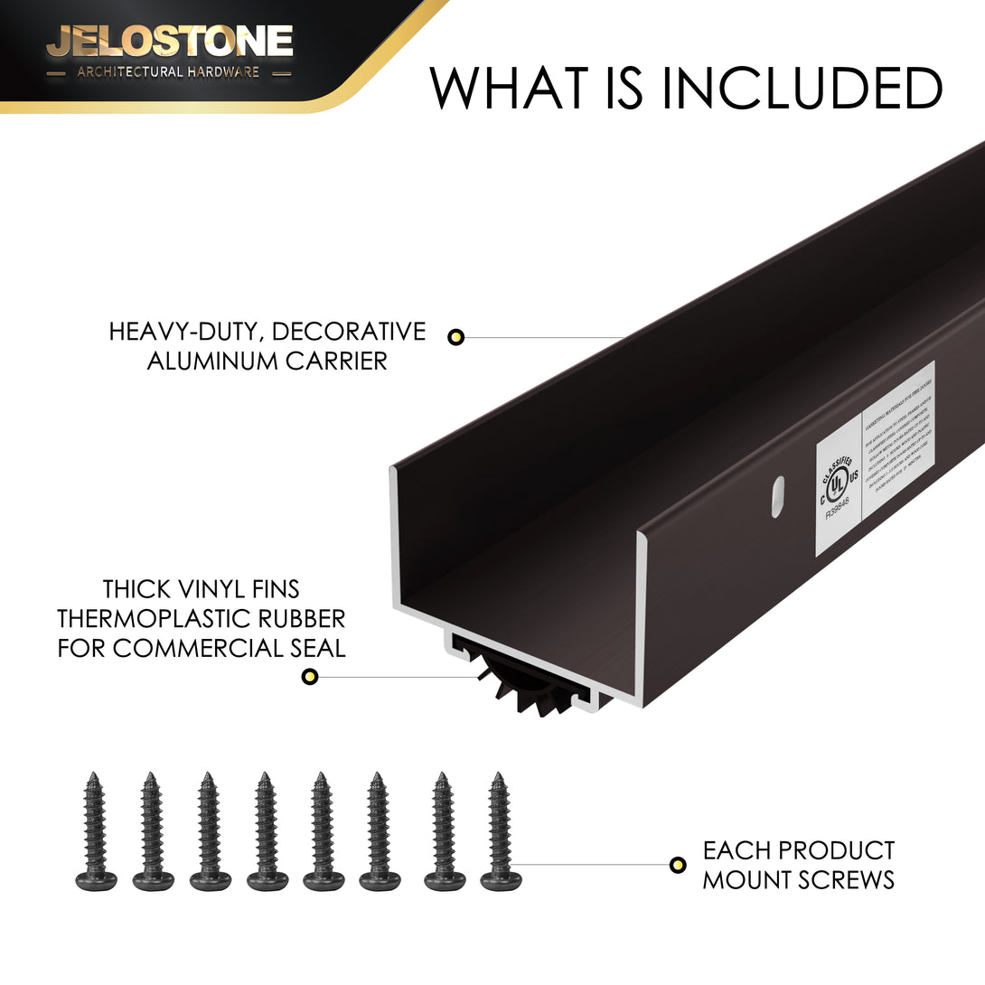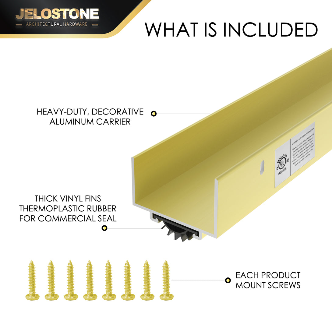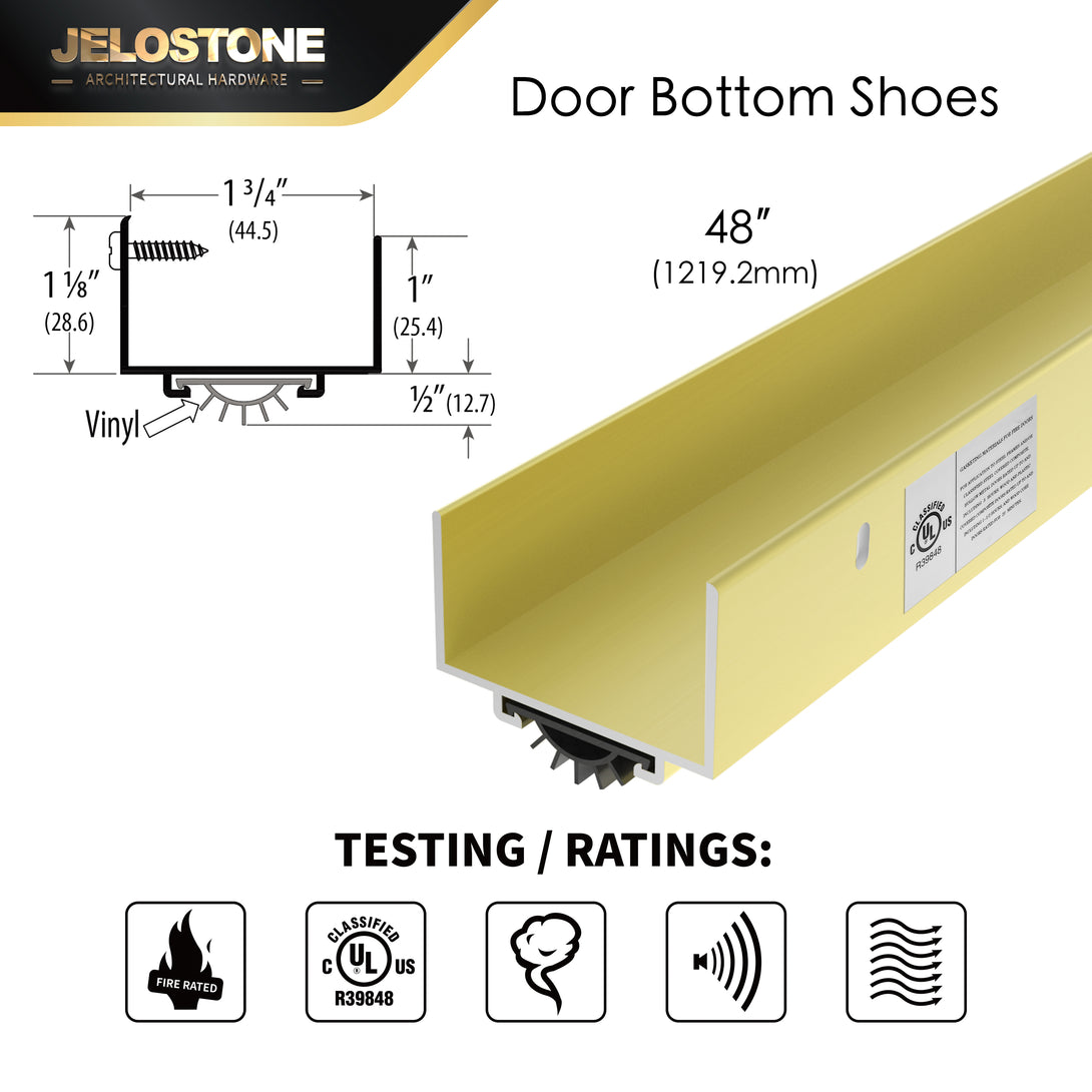 JELOSTONE Commercial Door Bottom Shoes JS-217DV is crafted from a heavy-duty aluminum carrier and vinyl rubber, offering long-lasting performance and acting as a weather-stripping door seal bottom. It has a UL 10B/10C fire-resistance rating, being both durable and providing additional safety protection.
