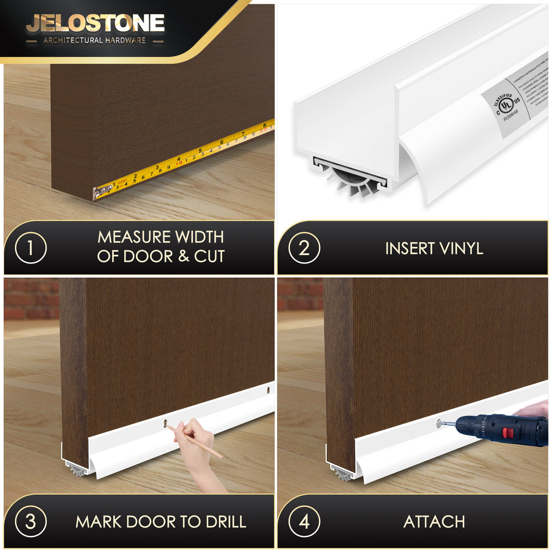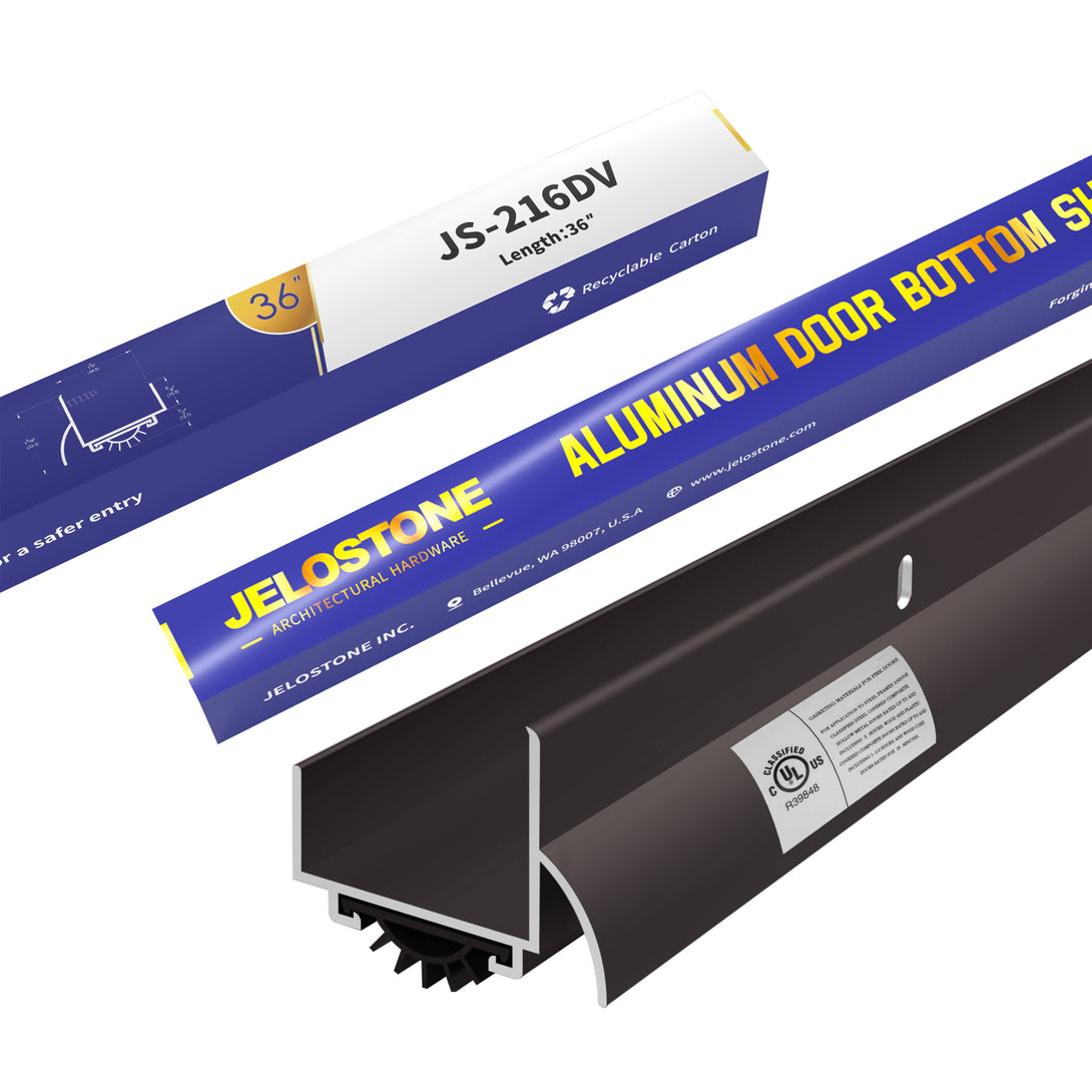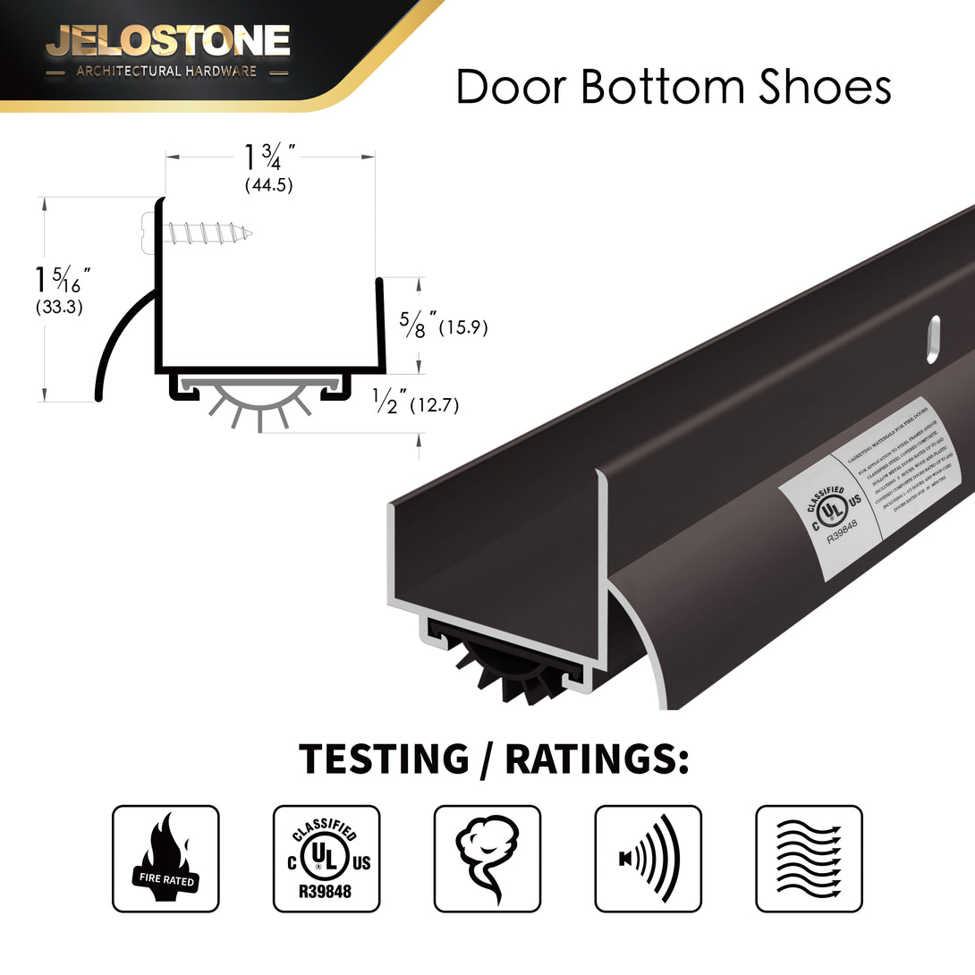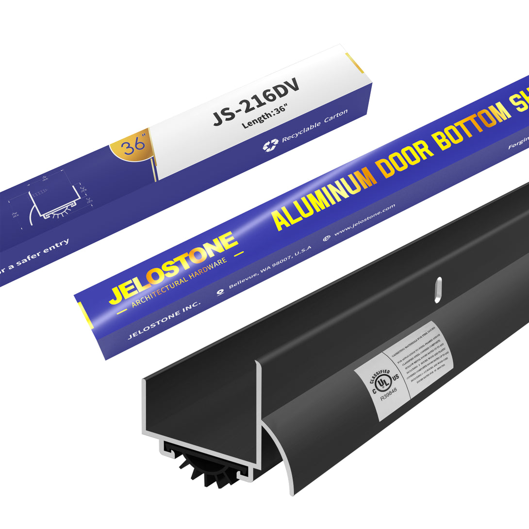 - 𝐂𝐞𝐫𝐭𝐢𝐟𝐢𝐜𝐚𝐭𝐢𝐨𝐧𝐬 𝐚𝐧𝐝 𝐖𝐢𝐝𝐞 𝐀𝐩𝐩𝐥𝐢𝐜𝐚𝐭𝐢𝐨𝐧: JELOSTONE Commercial Door Bottom Shoes JS-216DV is UL-Certified, meets high standards for performance, safety, and environmental friendliness. It suits both residential and commercial doors.