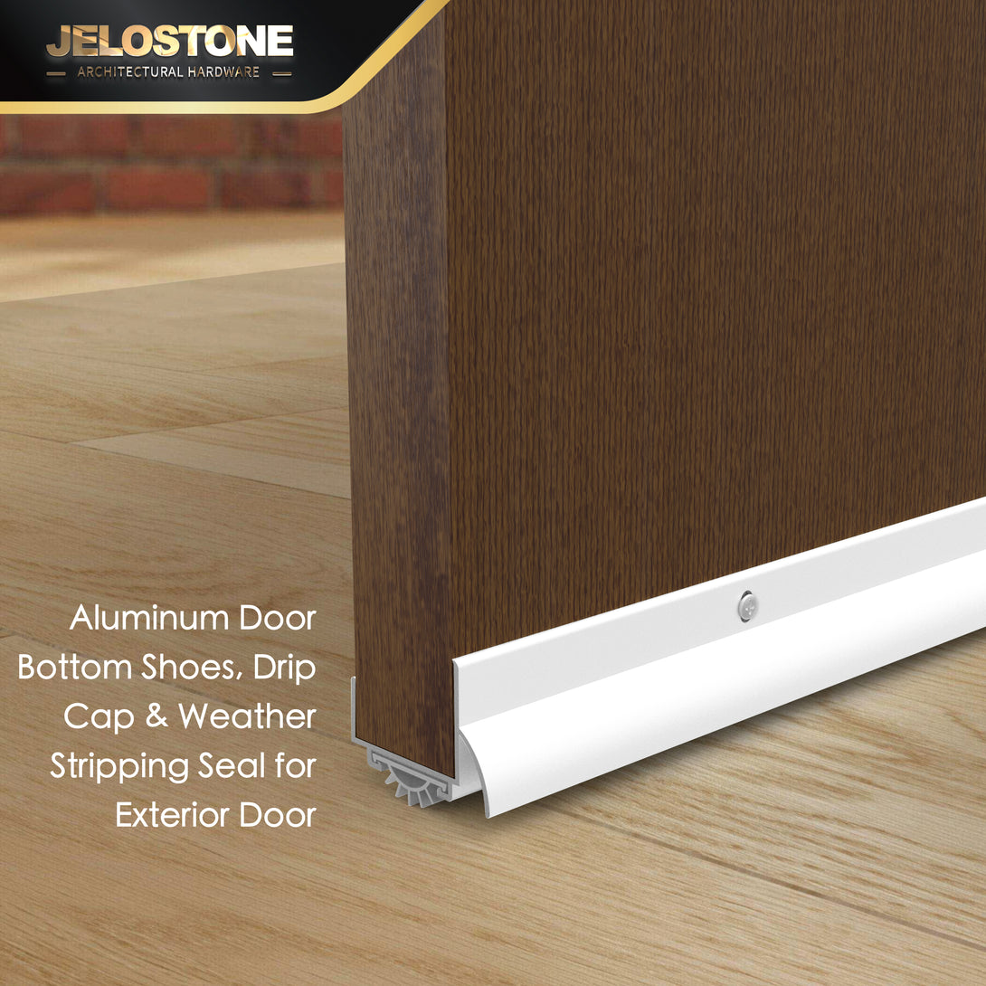 JELOSTONE 36 Inch U-Shaped Aluminum Door Bottom Sweep with Drip Cap - Fire Rated Weather Stripping Seal for Exterior Doors, Vinyl Insert, JS-216DV-36