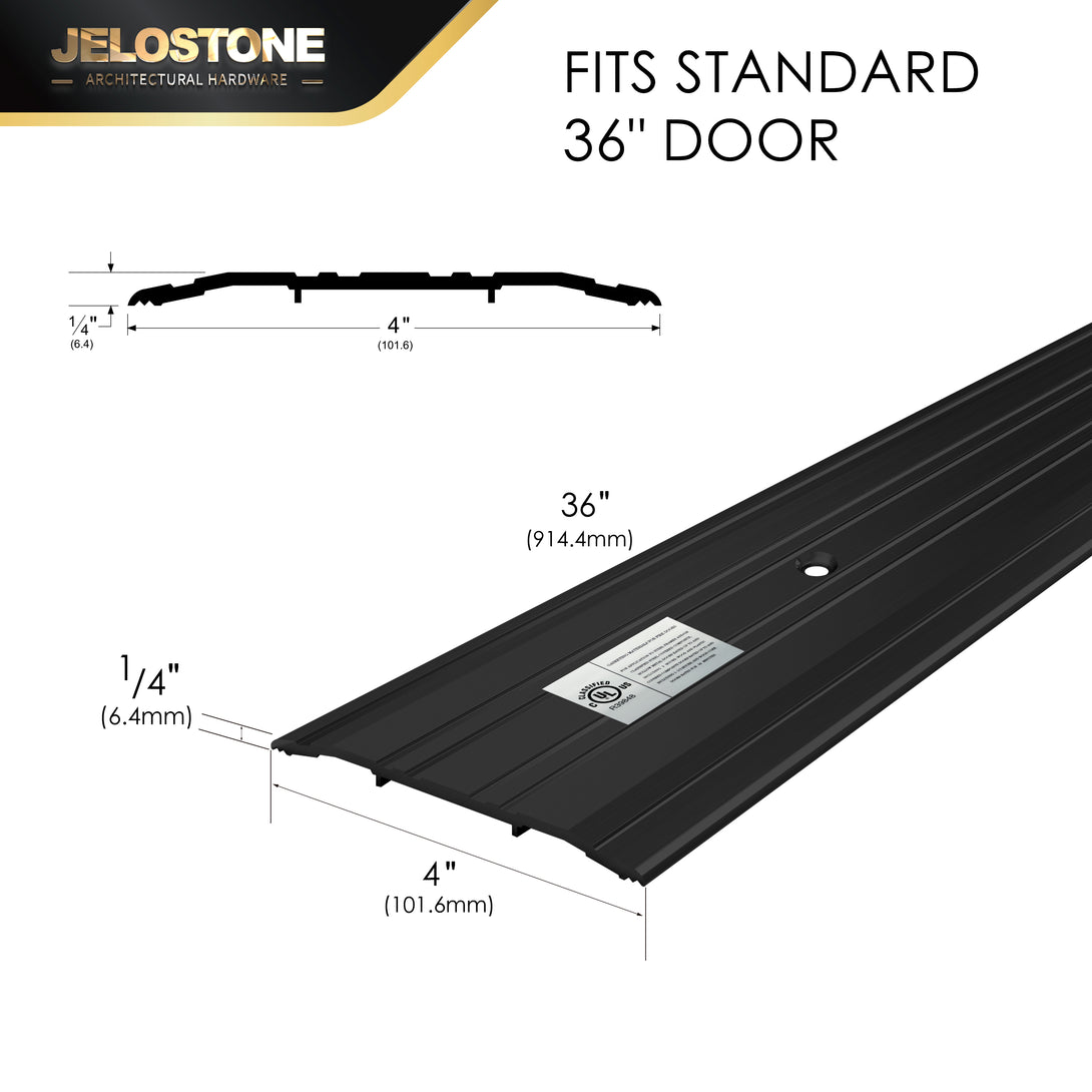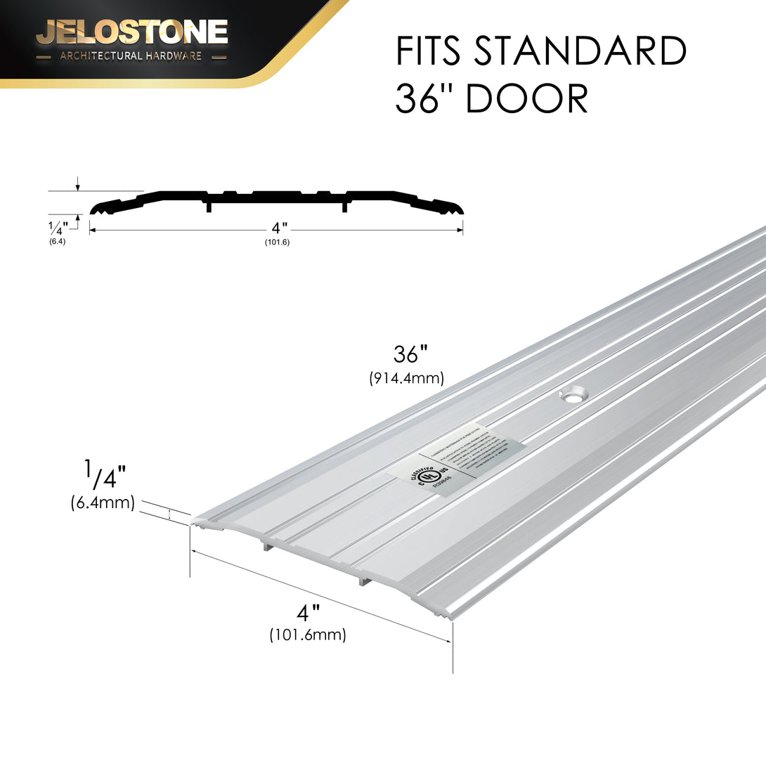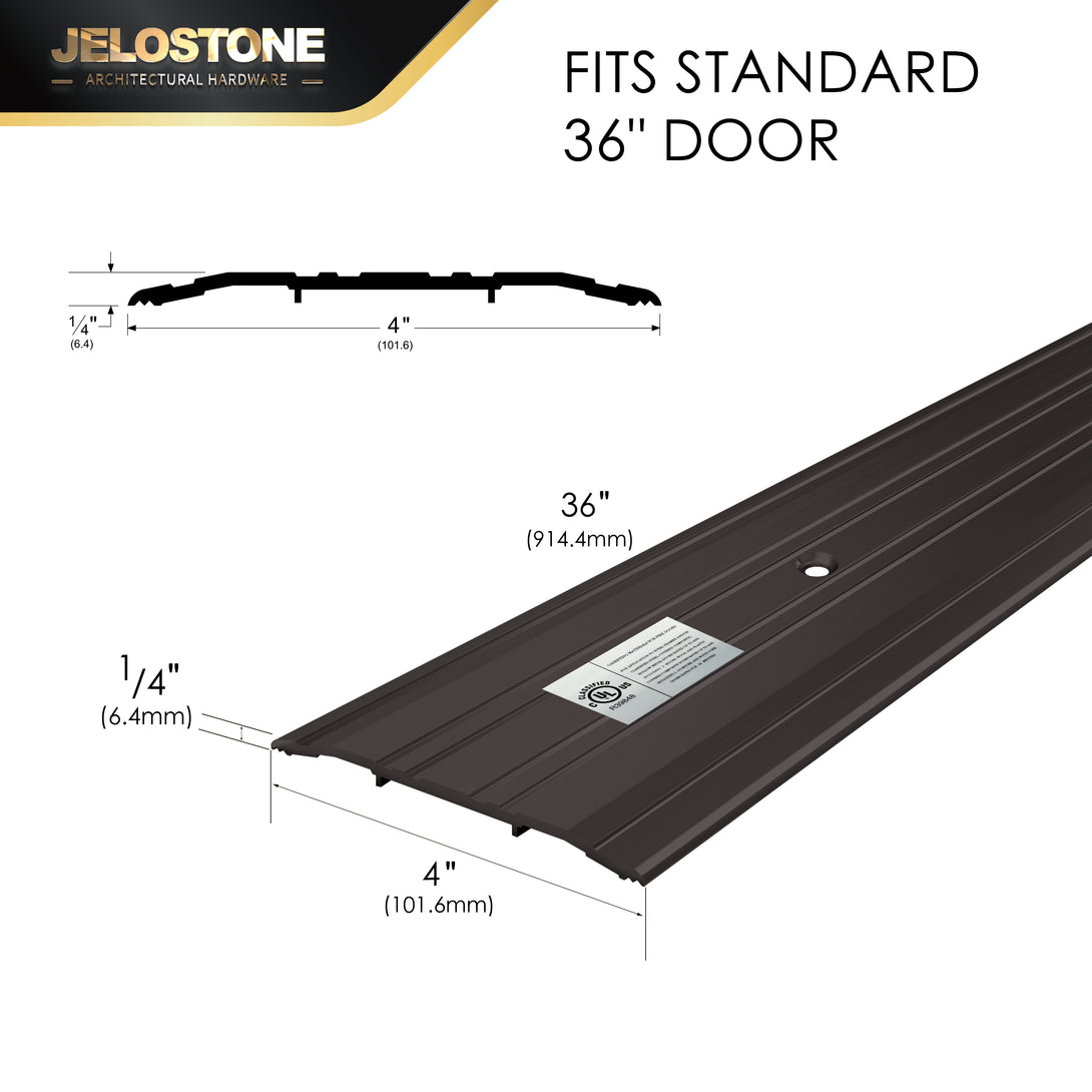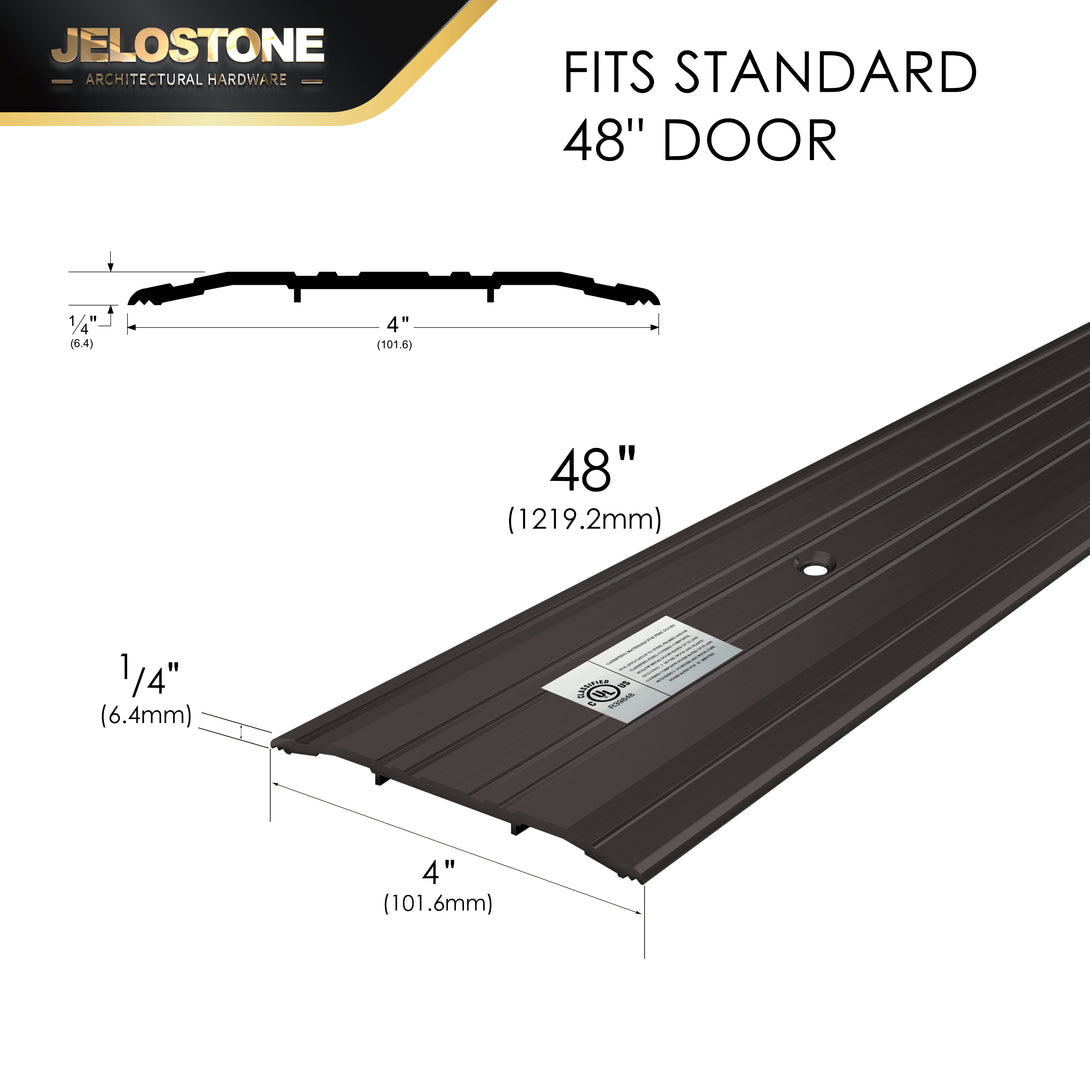 Our door transition strip is available in lengths of 36 inches, ensuring a tailored fit for any doorway dimension. Our metal door threshold is 4’’/5"/6" Wide and 1/4" High.