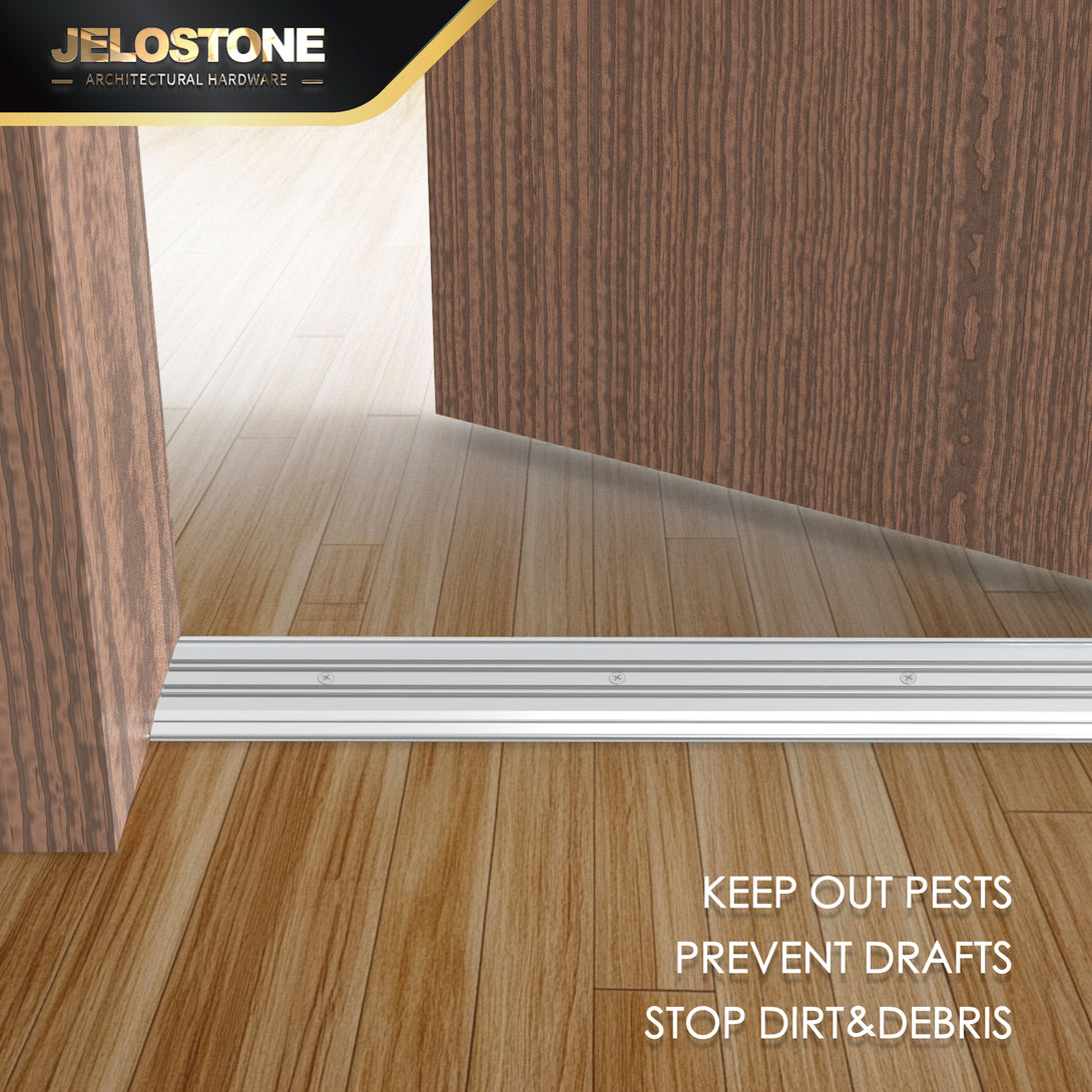 Aluminum threshold transition strip stabilizes exterior doors, preventing sagging and ensuring proper alignment. Their weatherproof design seals against drafts and moisture, protecting interiors from outdoor elements.
